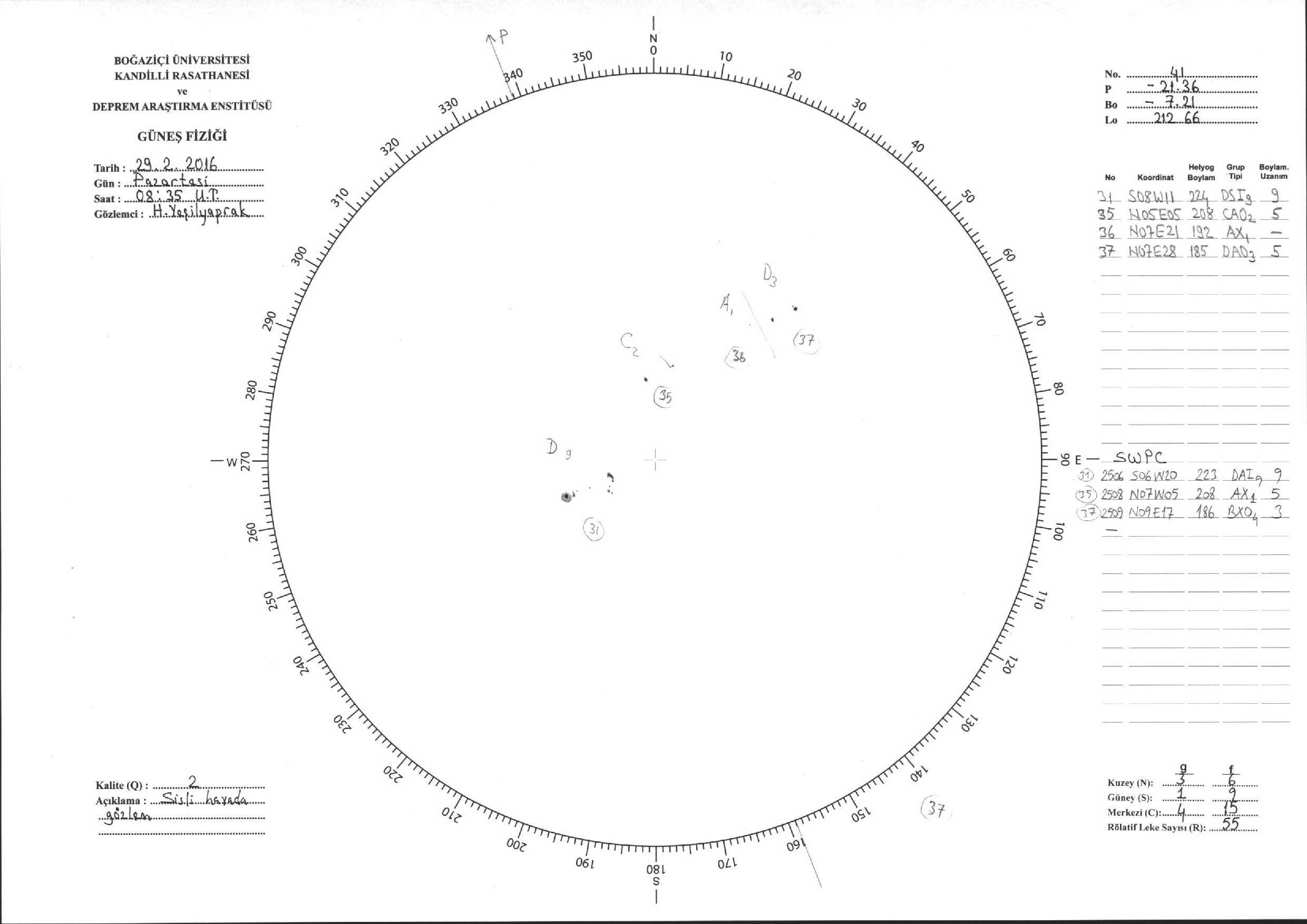 Güneş Lekesi Çizimi - 29.02.2016