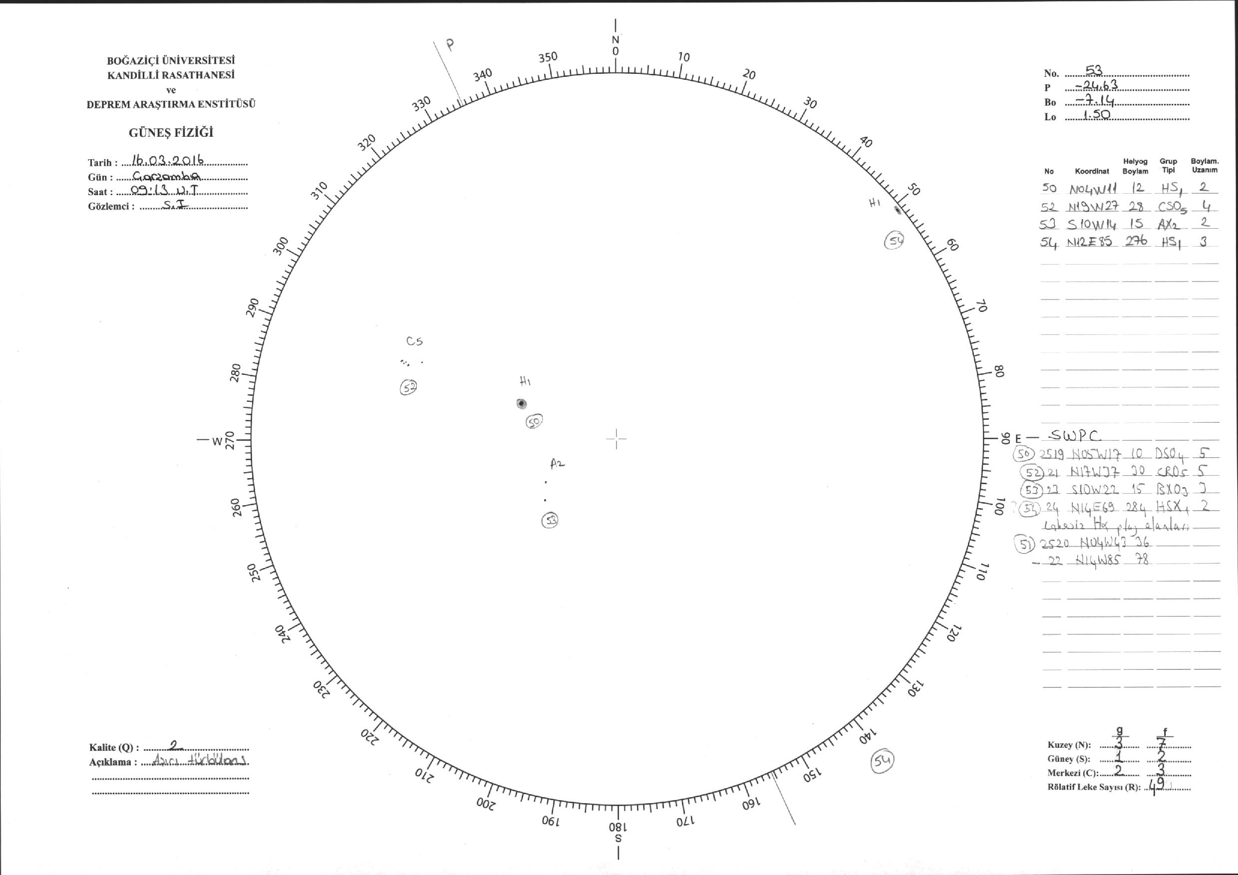 Güneş Lekesi Çizimi - 16.03.2016