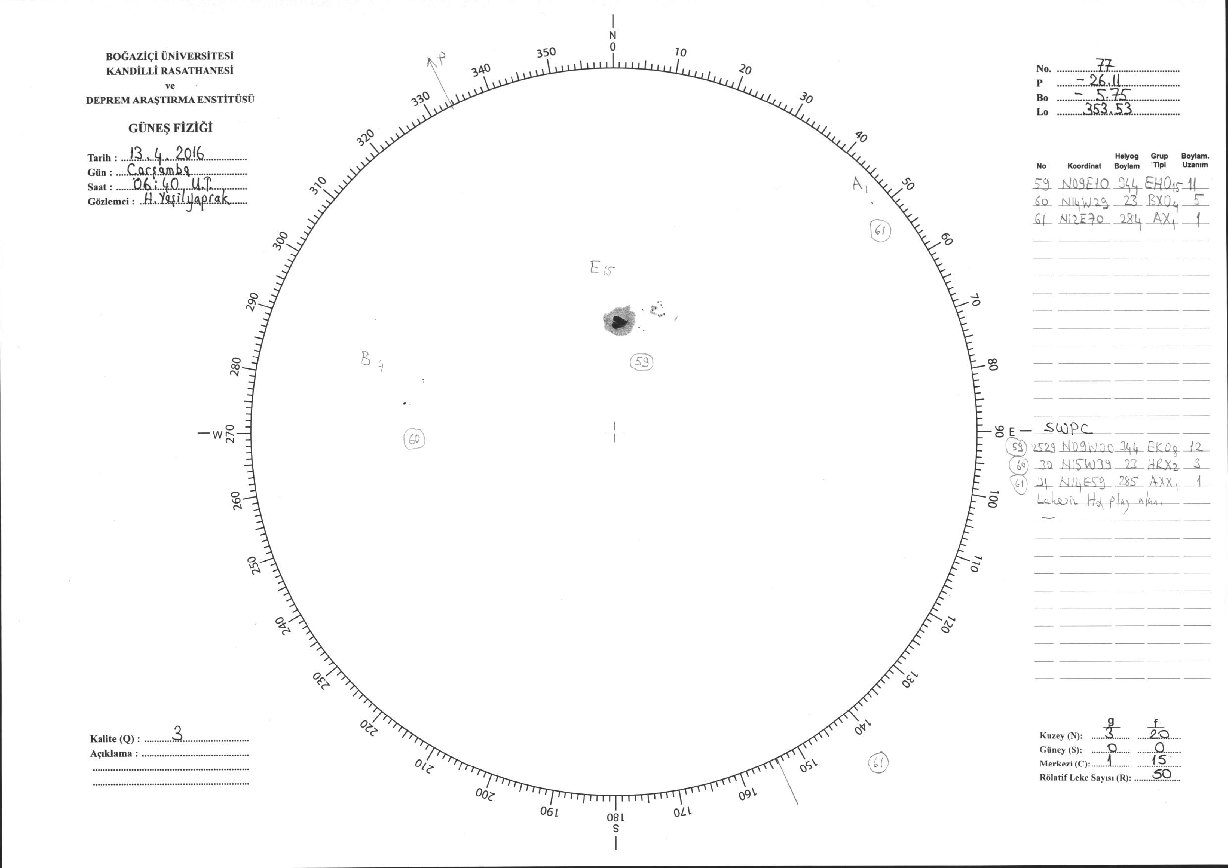 Güneş Lekesi Çizimi - 13.04.2016
