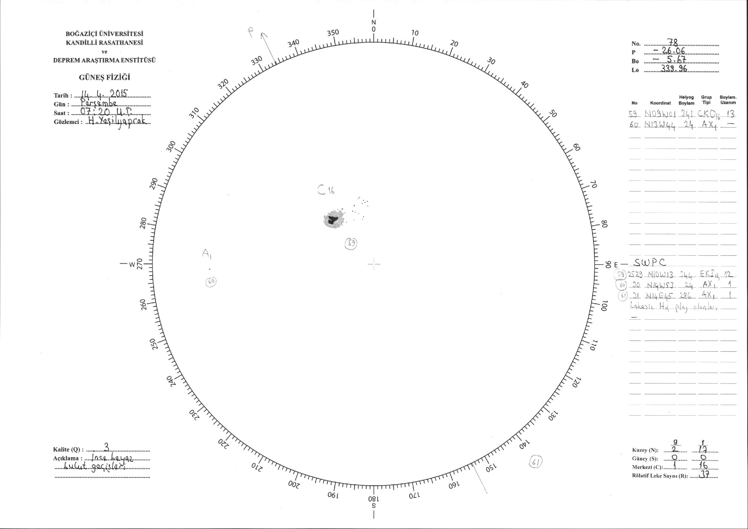 Güneş Lekesi Çizimi - 14.04.2016