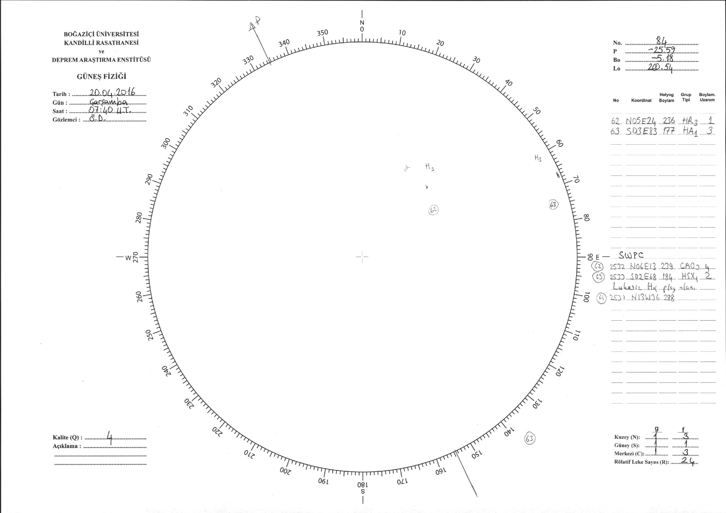 Güneş Lekesi Çizimi - 20.04.2016