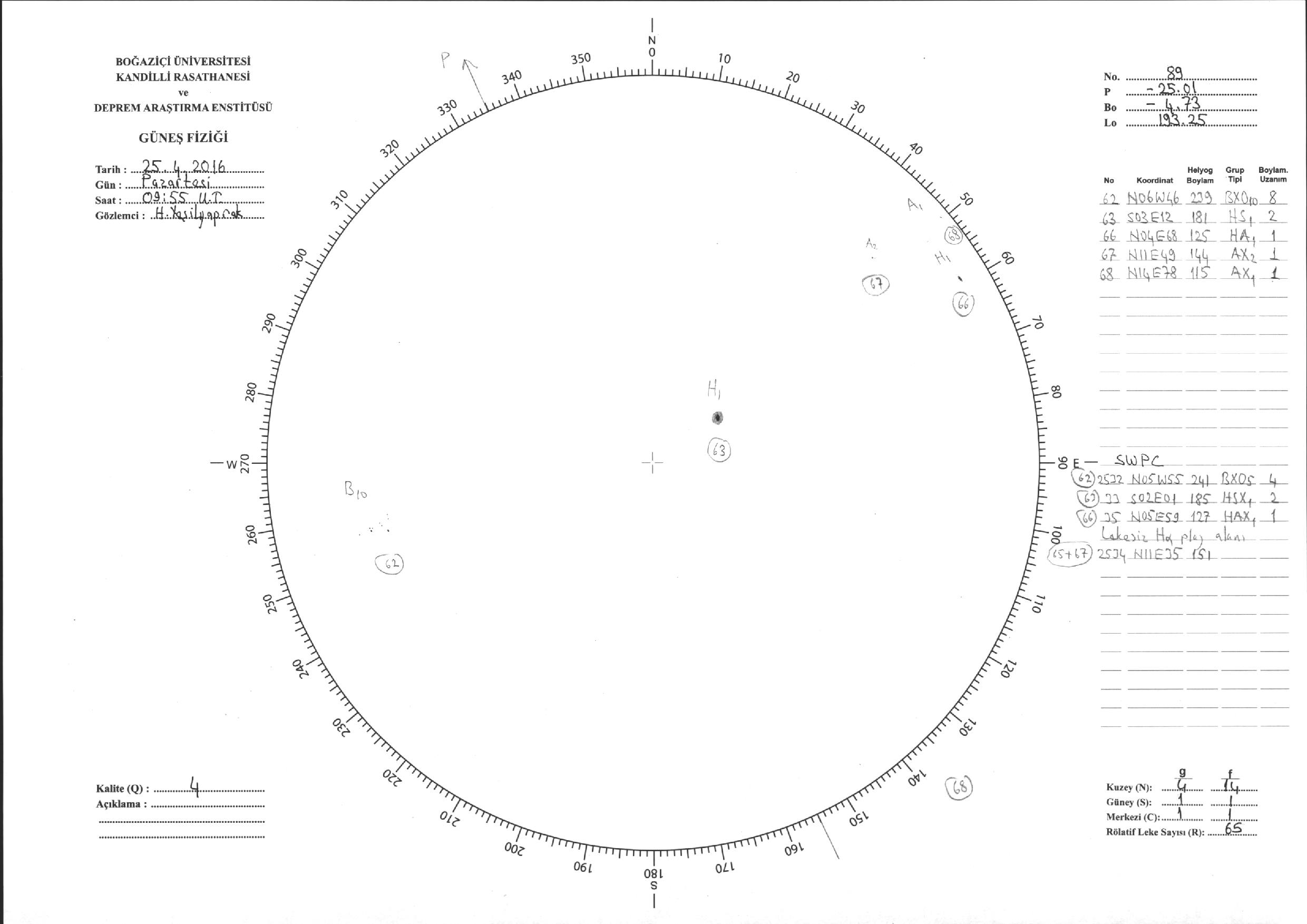 Güneş Lekesi Çizimi - 25.04.2016