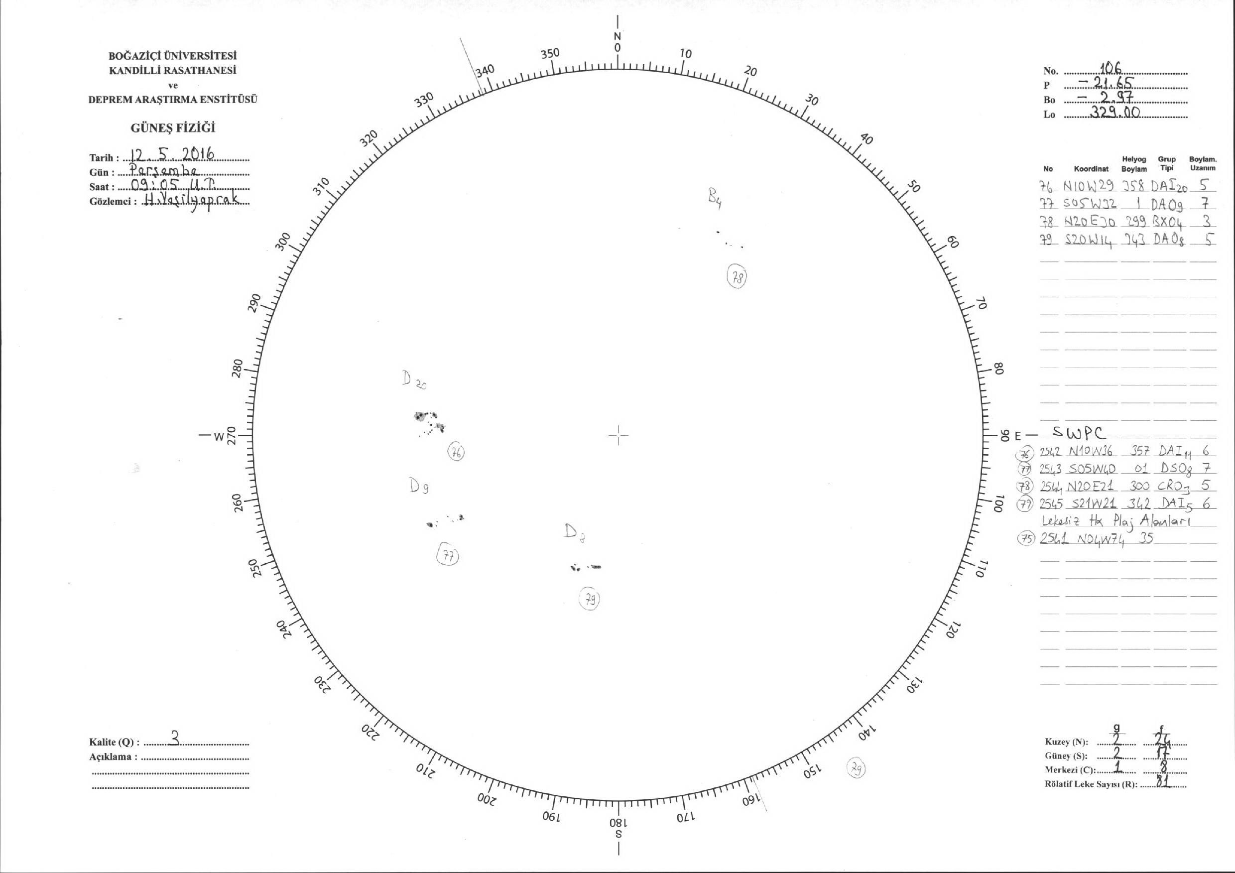 Güneş Lekesi Çizimi - 12.05.2016