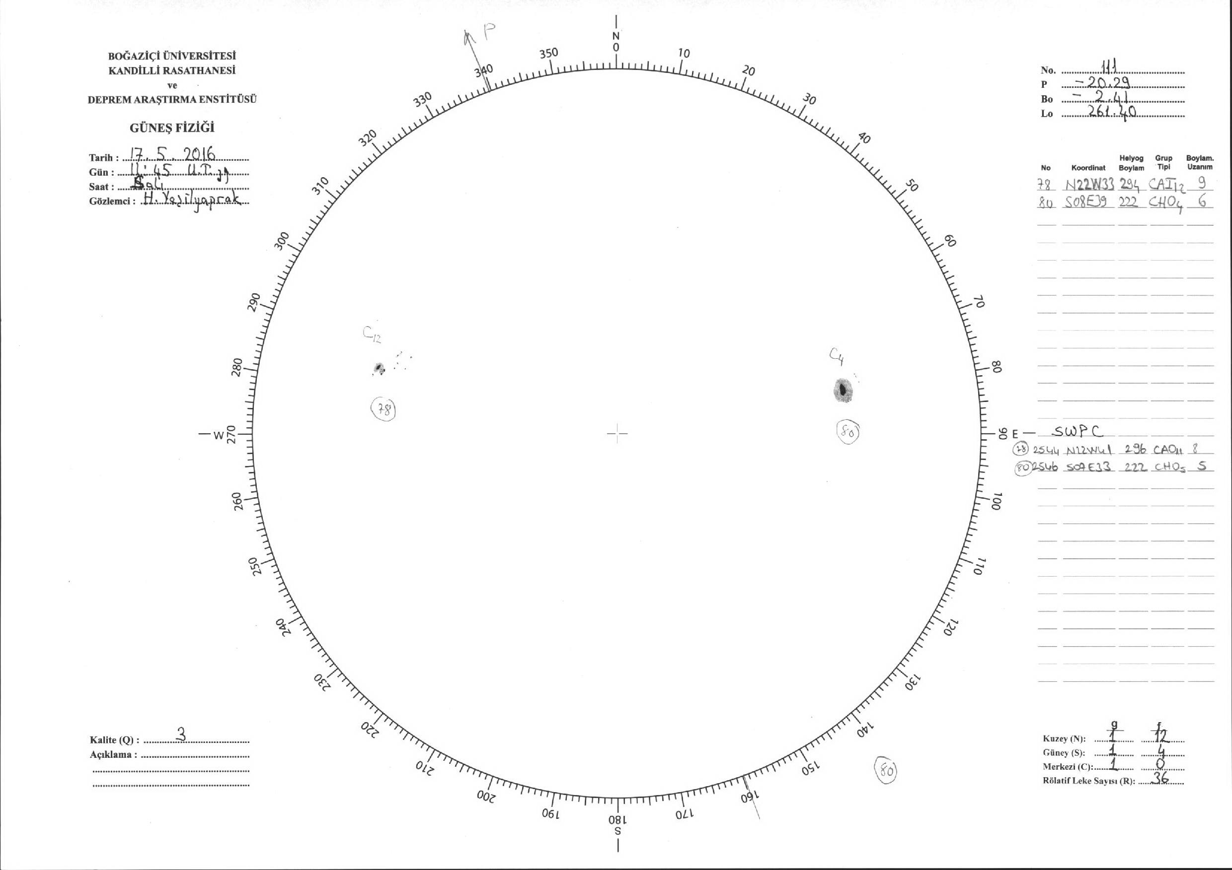 Güneş Lekesi Çizimi - 17.05.2016