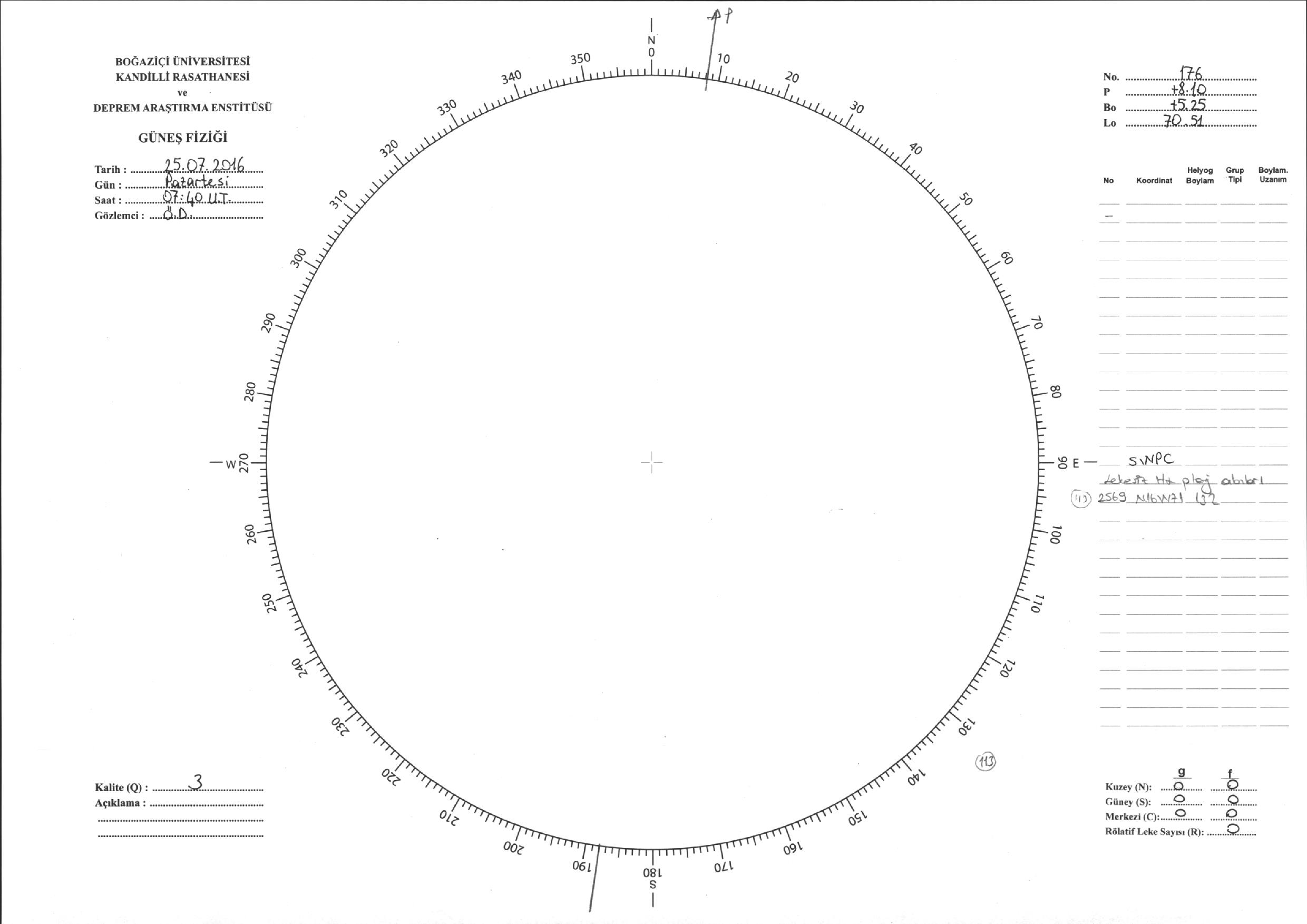 Güneş Lekesi Çizimi - 25.07.2016