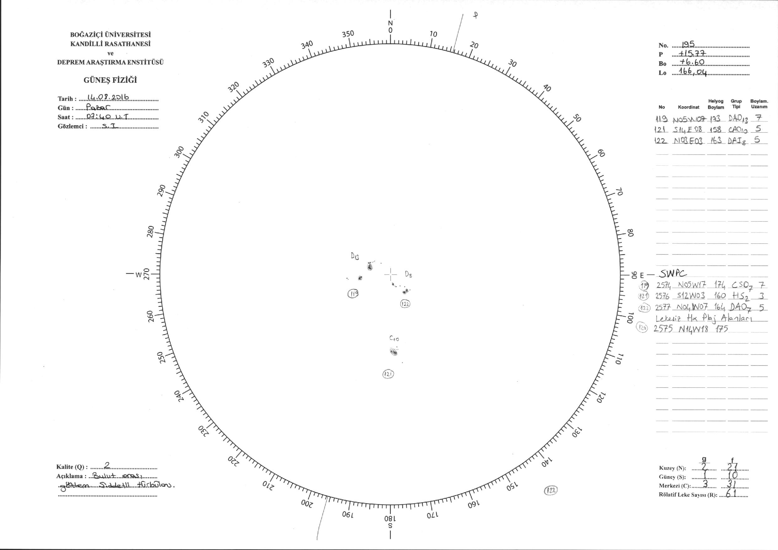 Güneş Lekesi Çizimi - 14.08.2016