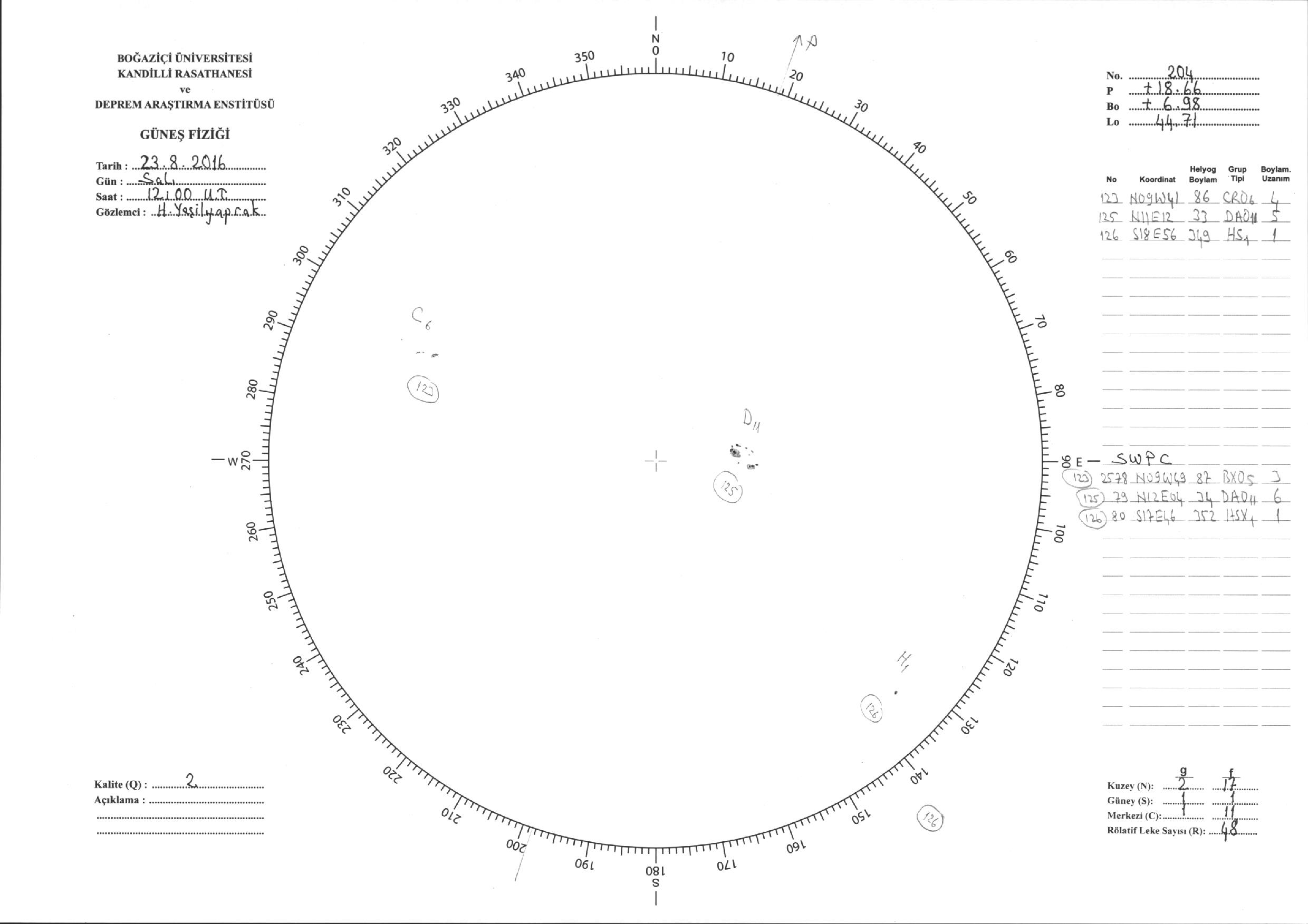 Güneş Lekesi Çizimi - 23.08.2016