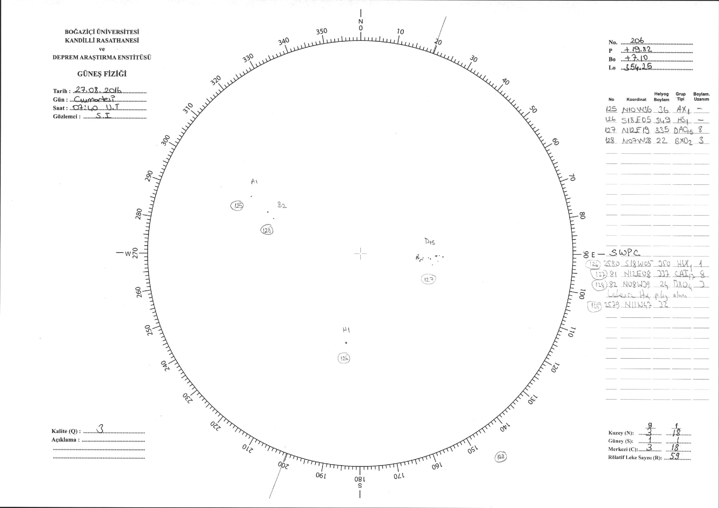 Güneş Lekesi Çizimi - 27.08.2016