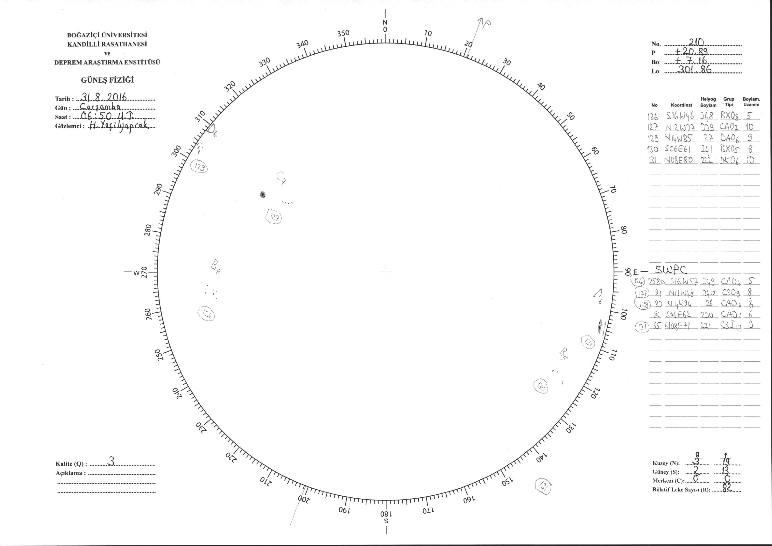 Güneş Lekesi Çizimi - 31.08.2016