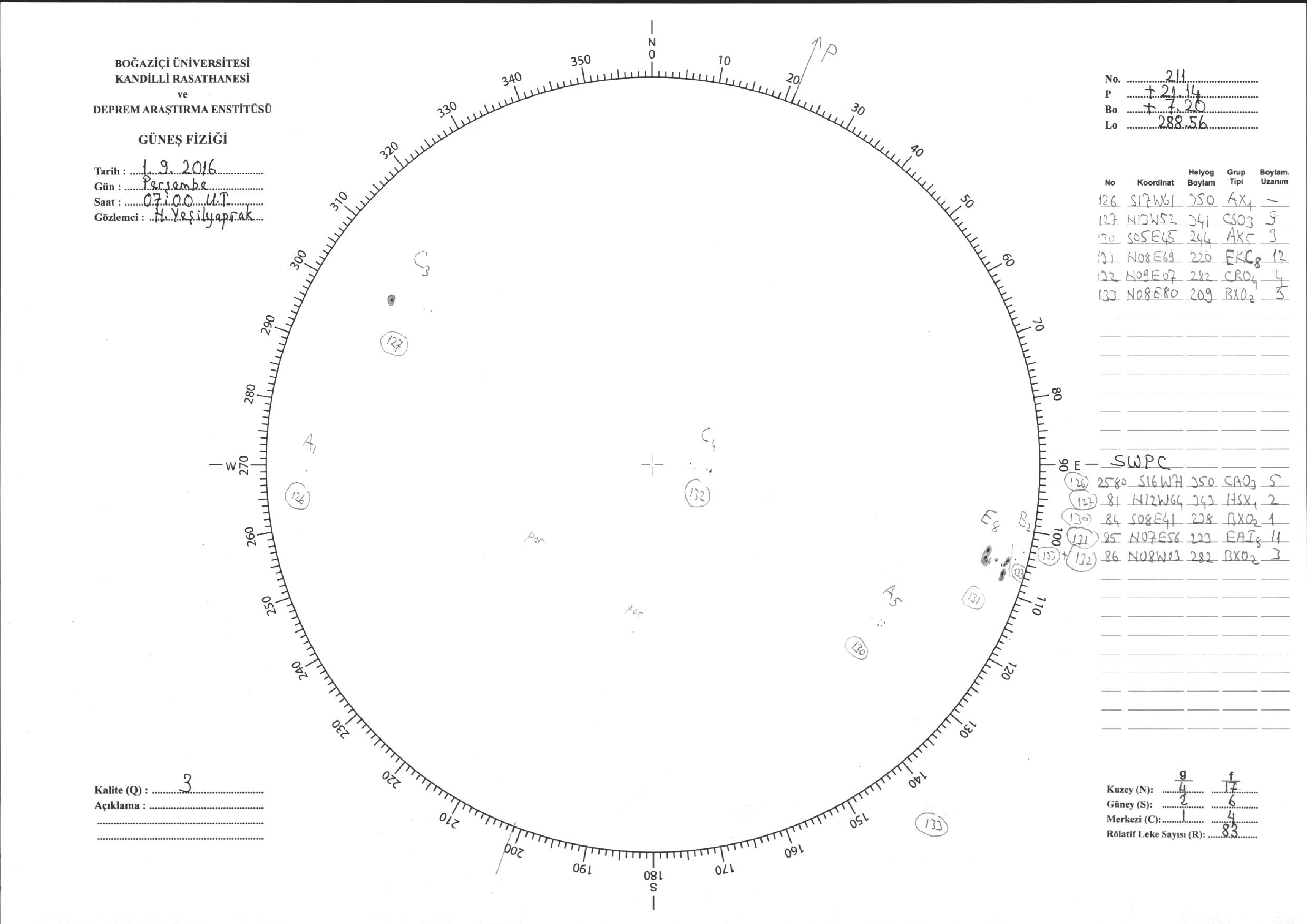 Güneş Lekesi Çizimi - 01.09.2016