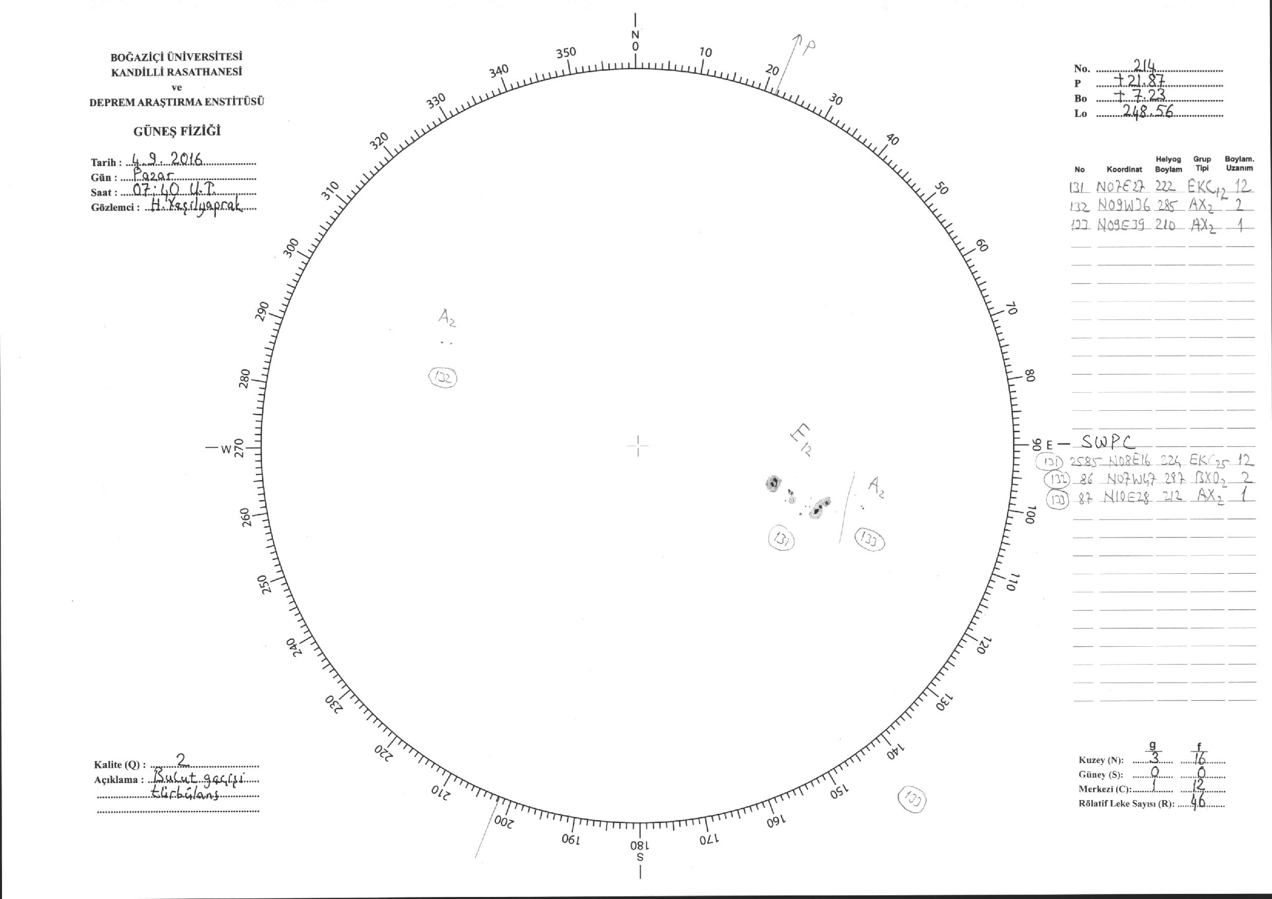 Güneş Lekesi Çizimi - 04.09.2016