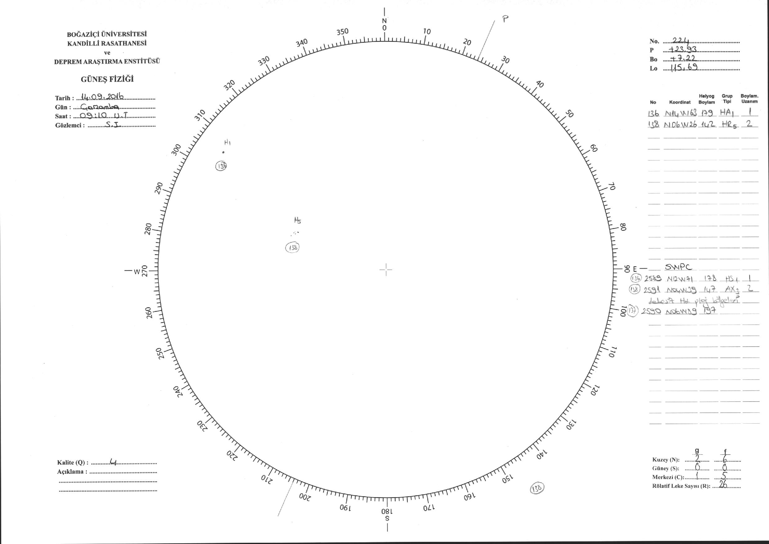 Güneş Lekesi Çizimi - 14.09.2016