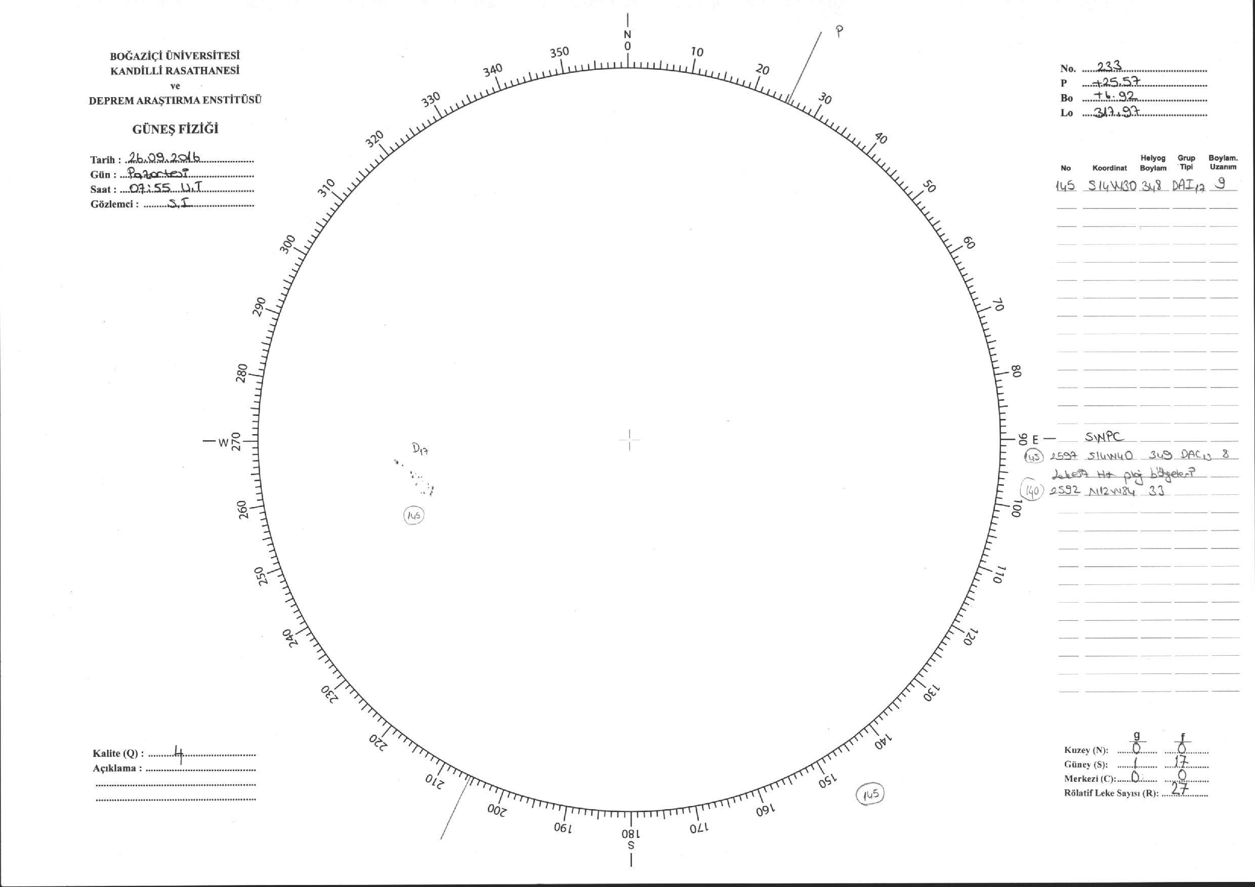 Güneş Lekesi Çizimi - 26.09.2016
