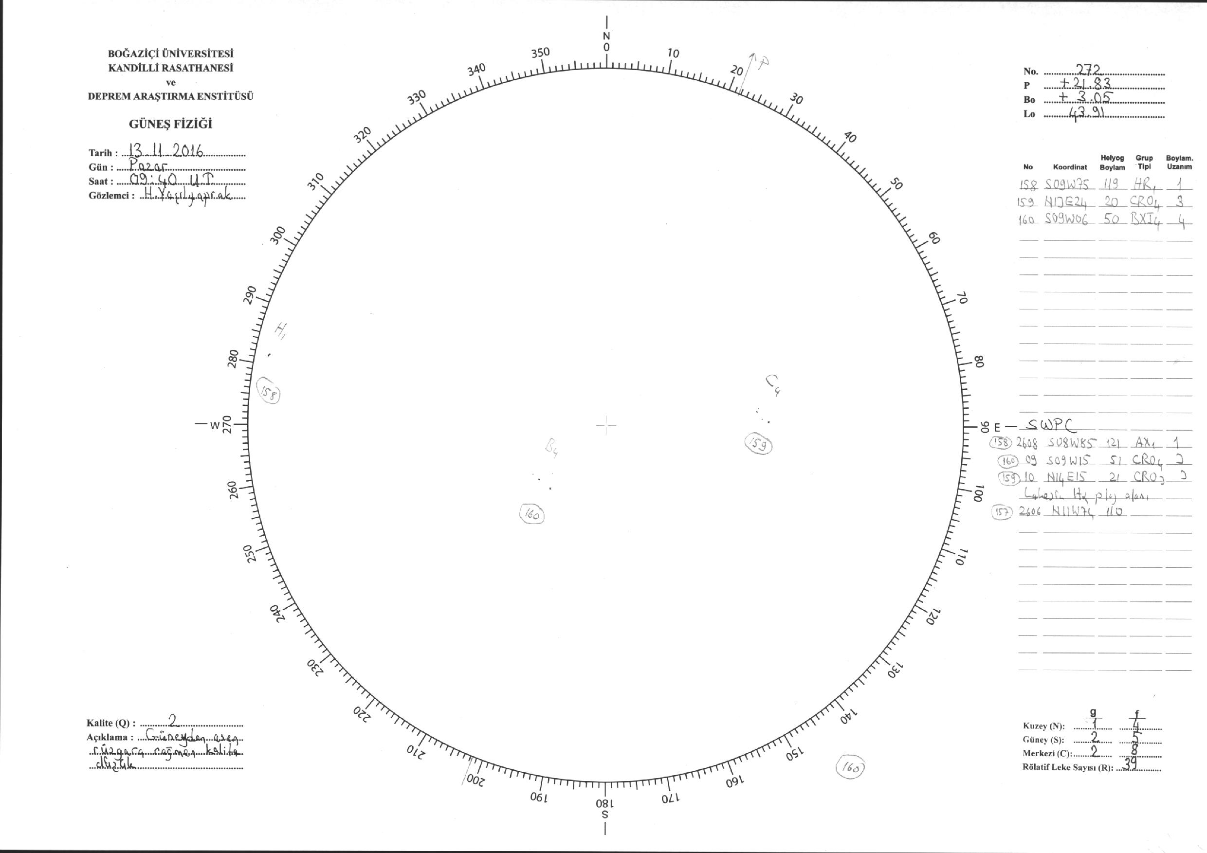 Güneş Lekesi Çizimi - 13.11.2016