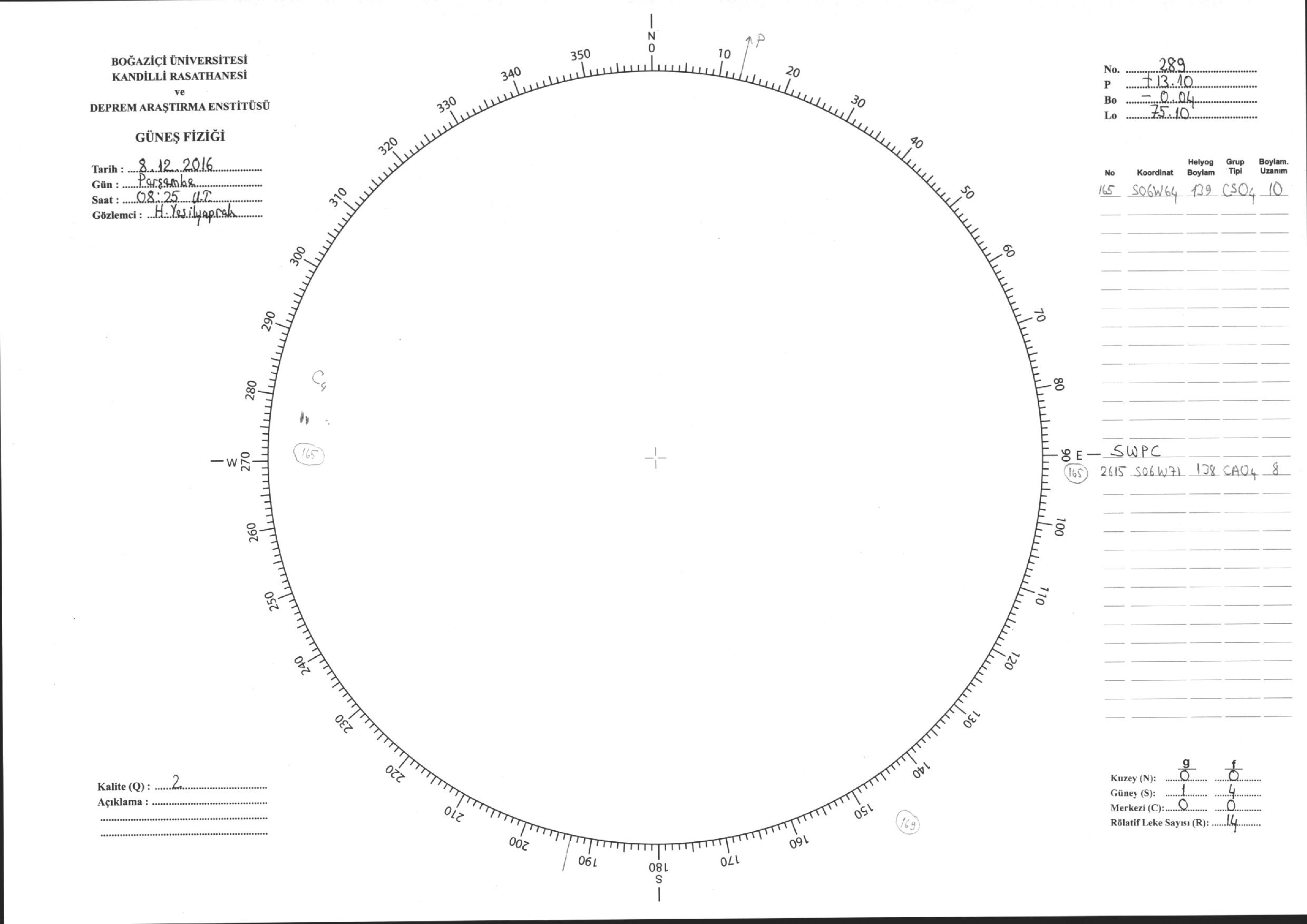 Güneş Lekesi Çizimi - 08.12.2016