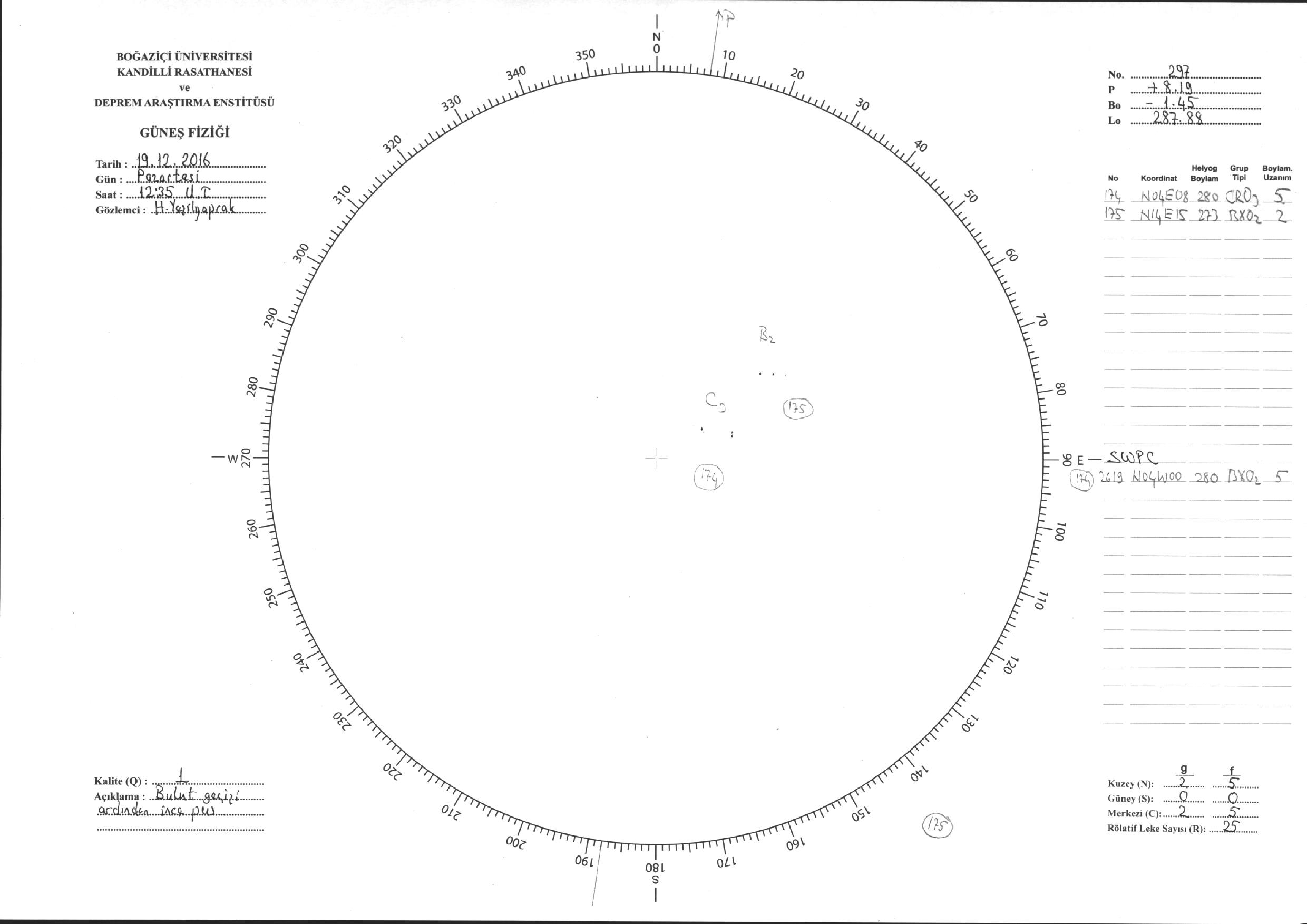 Güneş Lekesi Çizimi - 19.12.2016