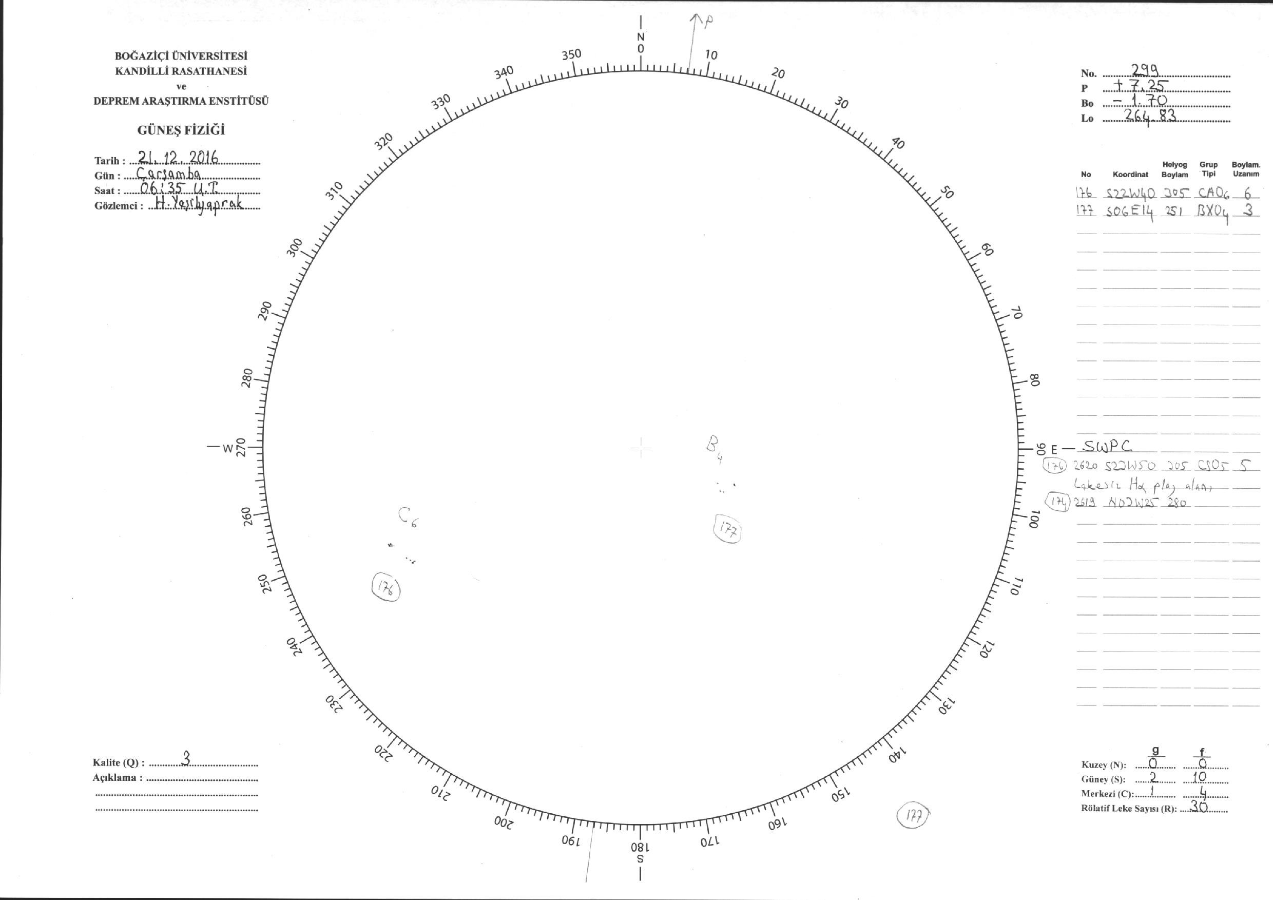 Güneş Lekesi Çizimi - 21.12.2016