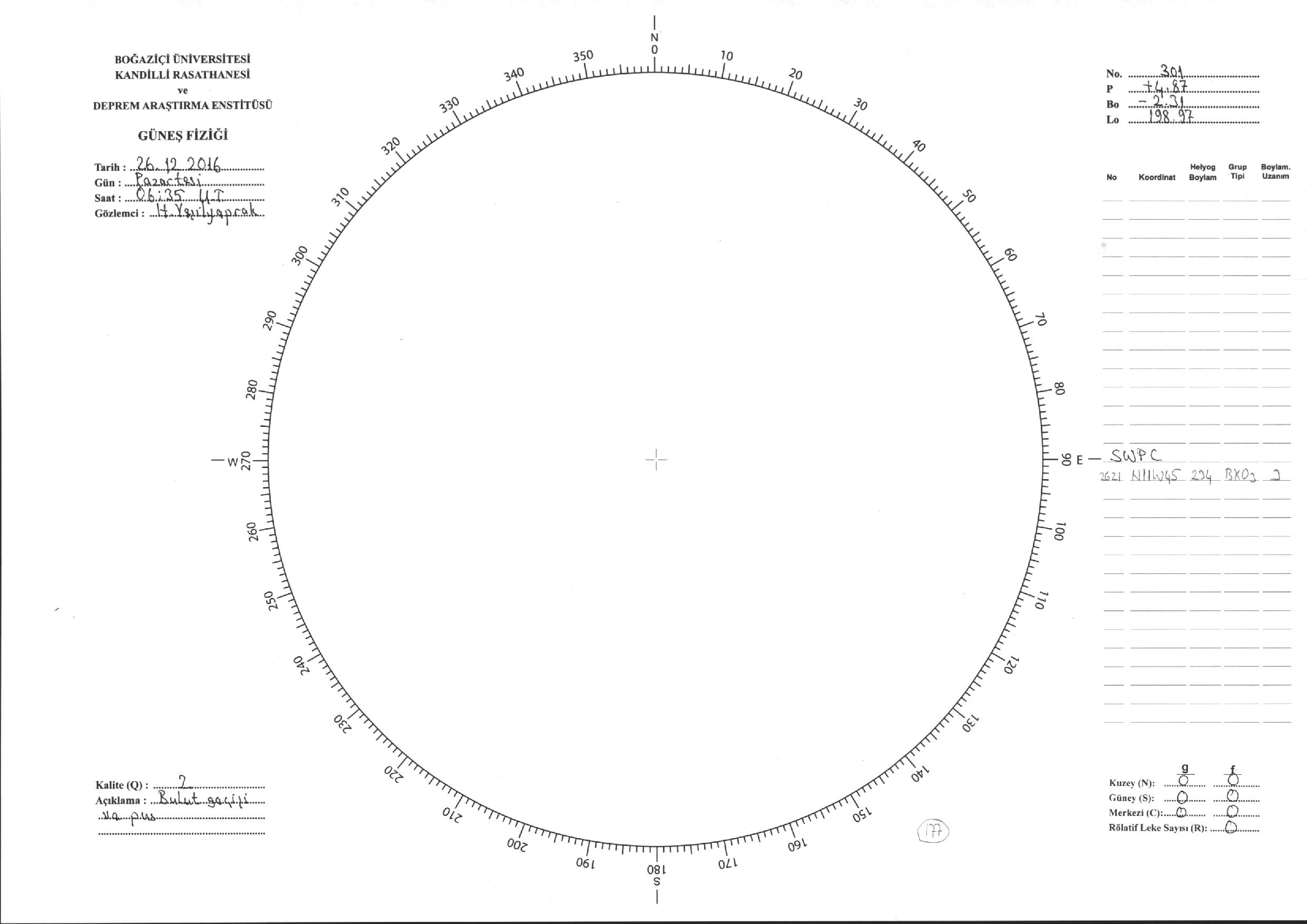 Güneş Lekesi Çizimi - 26.12.2016