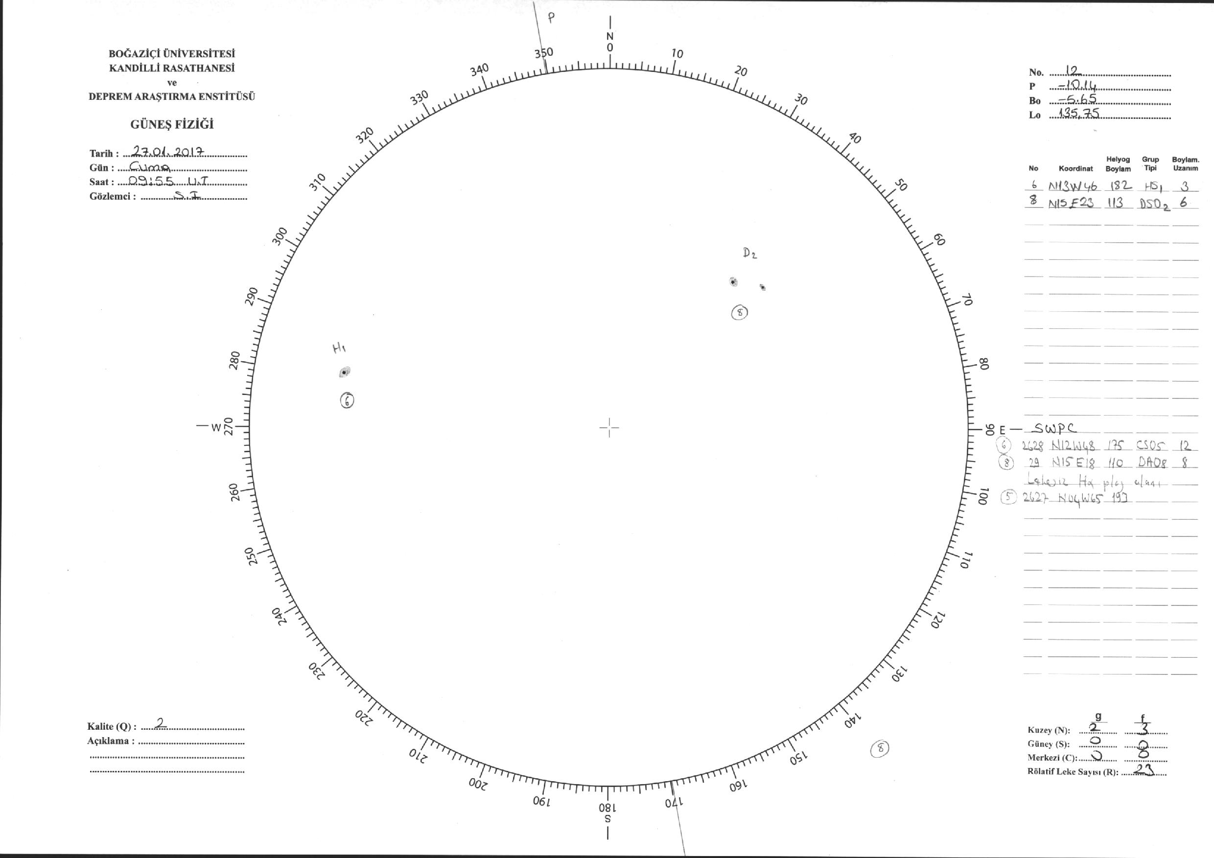Güneş Lekesi Çizimi - 27.01.2017
