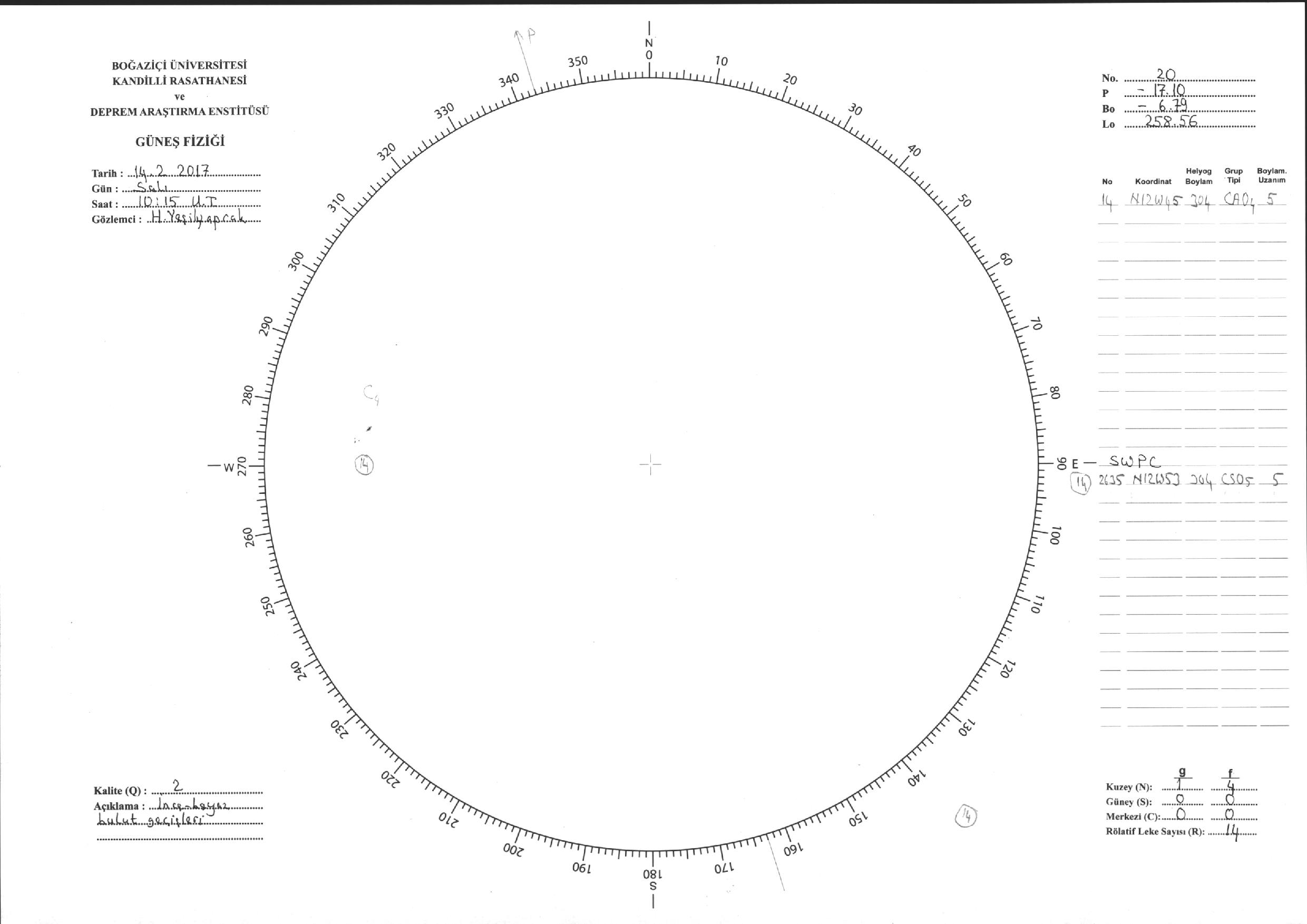 Güneş Lekesi Çizimi - 14.02.2017