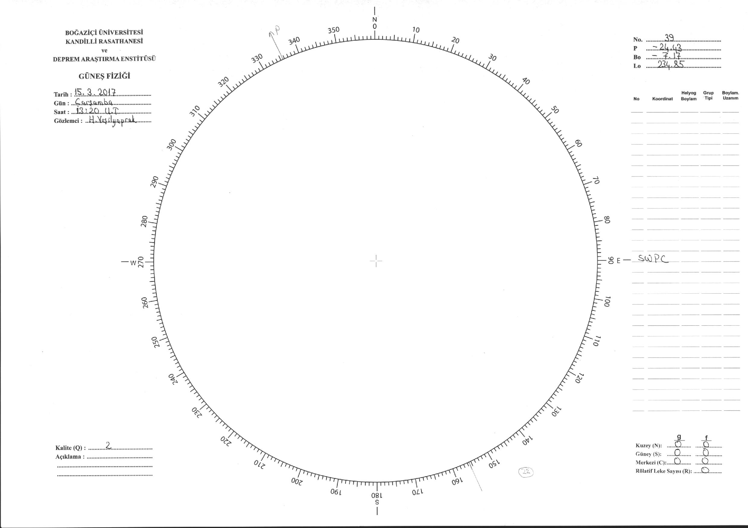 Güneş Lekesi Çizimi - 15.03.2017