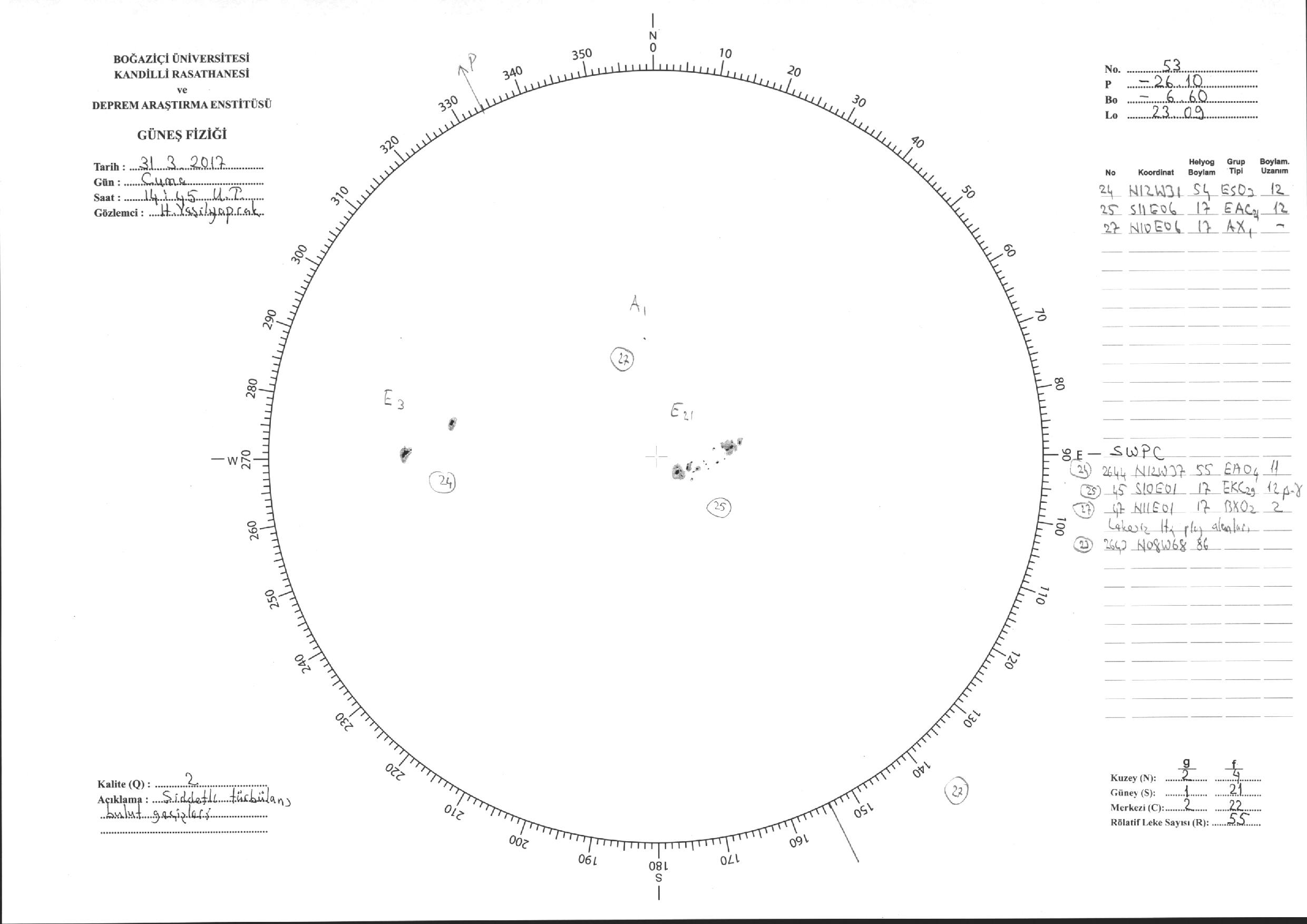 Güneş Lekesi Çizimi - 31.03.2017