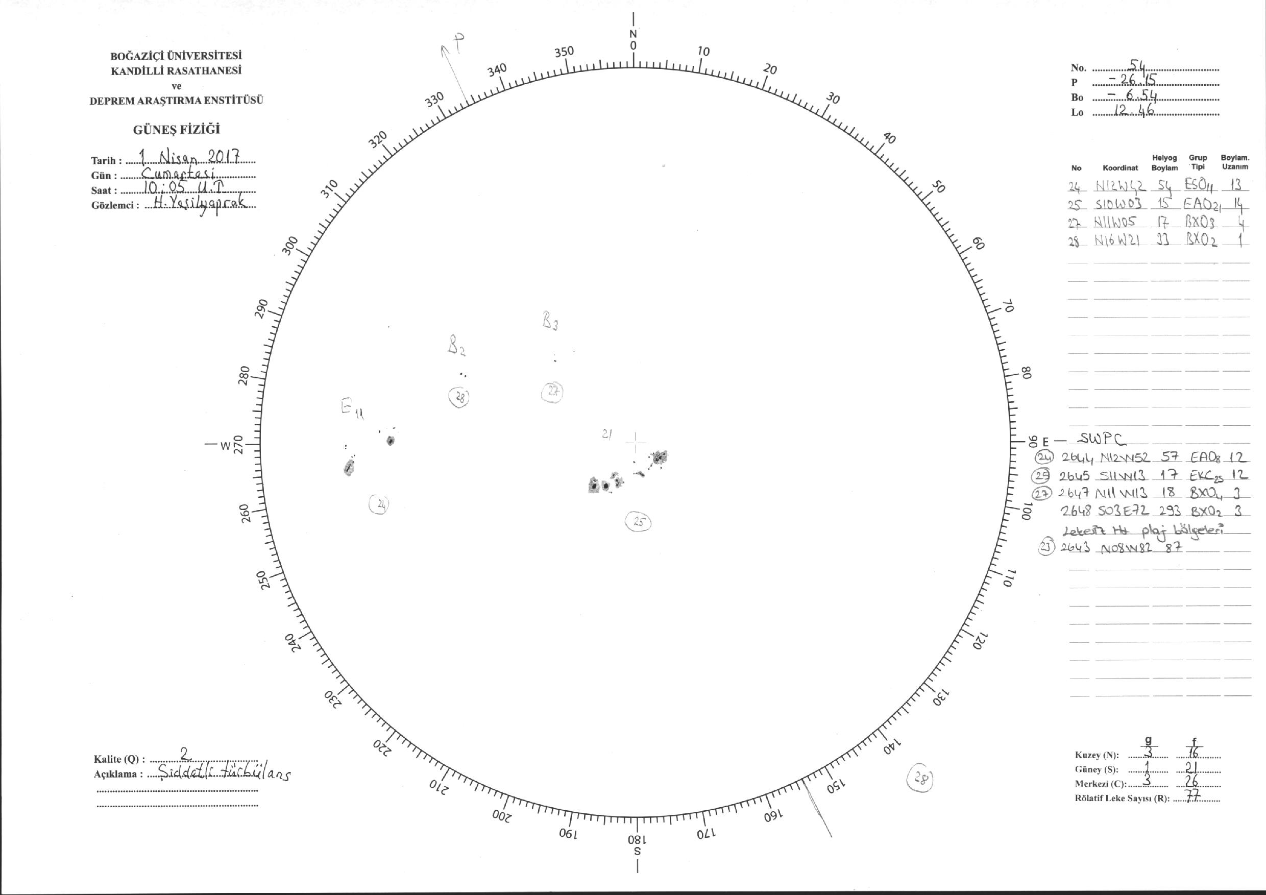 Güneş Lekesi Çizimi - 01.04.2017