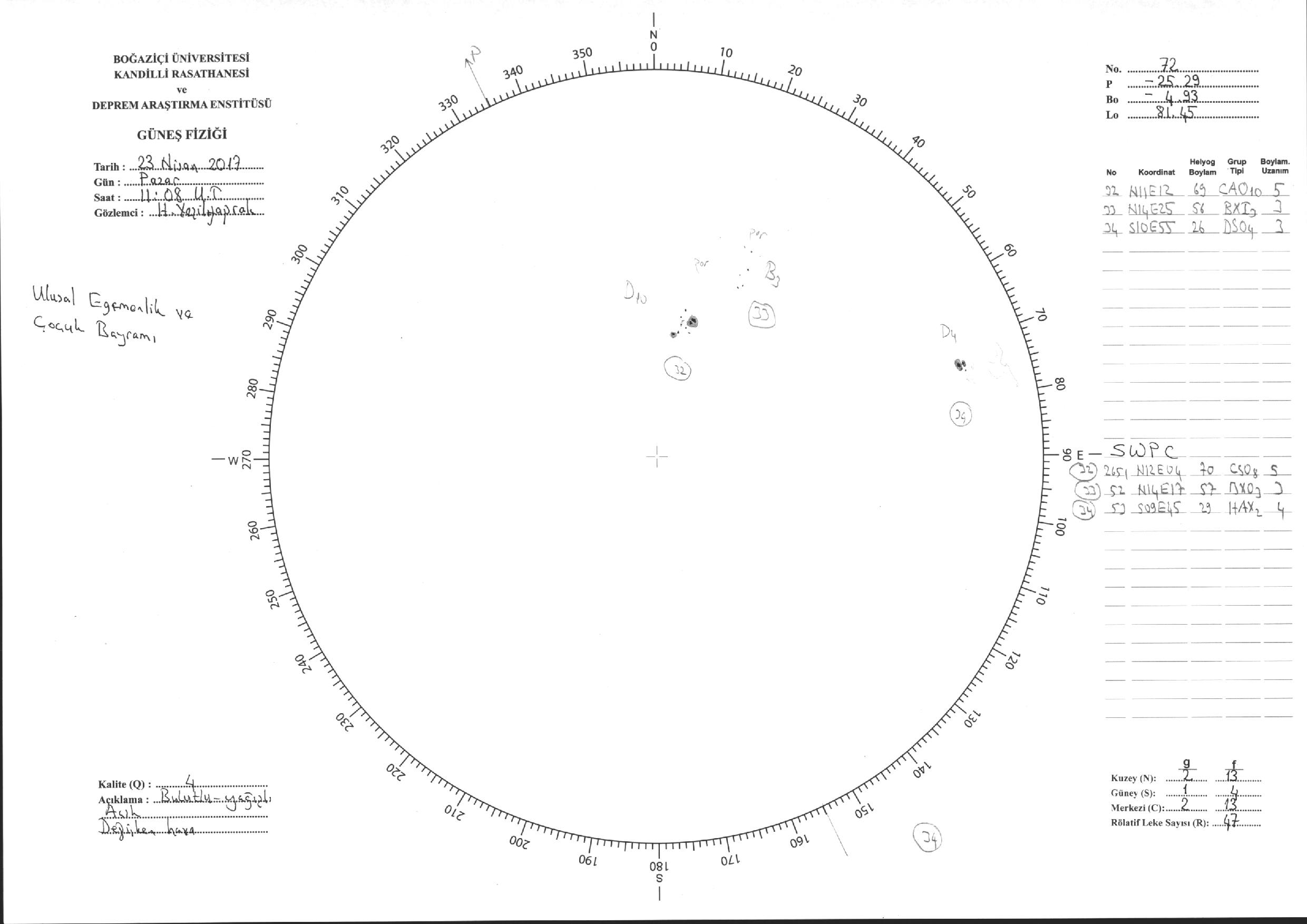 Güneş Lekesi Çizimi - 23.04.2017
