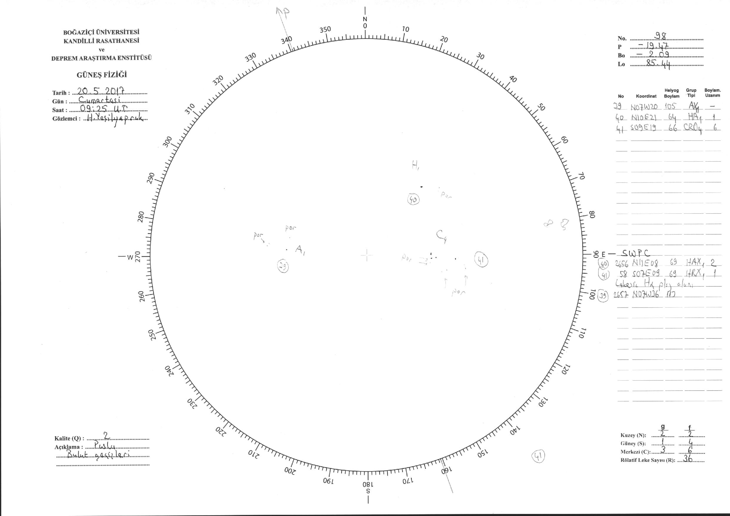 Güneş Lekesi Çizimi - 20.05.2017