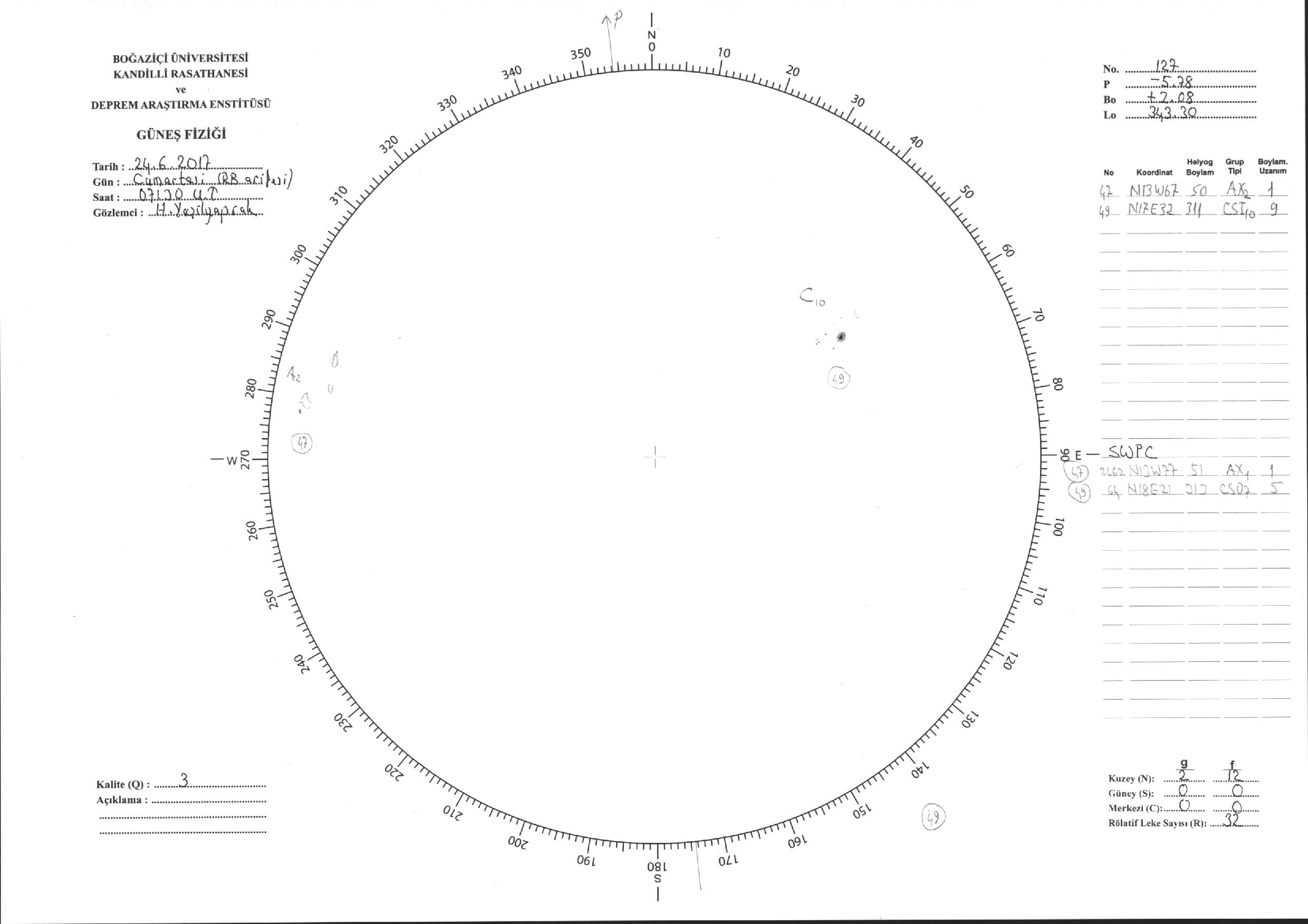 Güneş Lekesi Çizimi - 24.06.2017