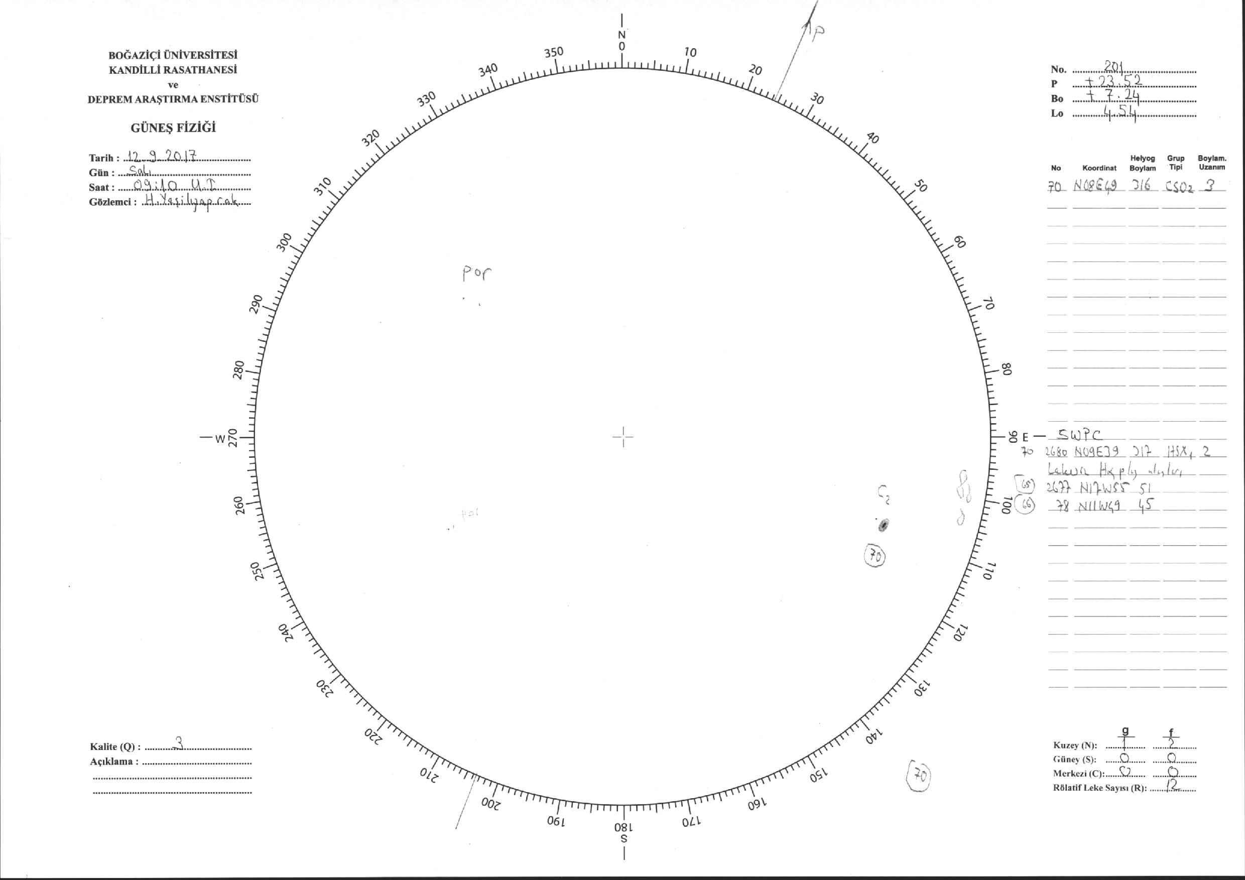 Güneş Lekesi Çizimi - 12.09.2017