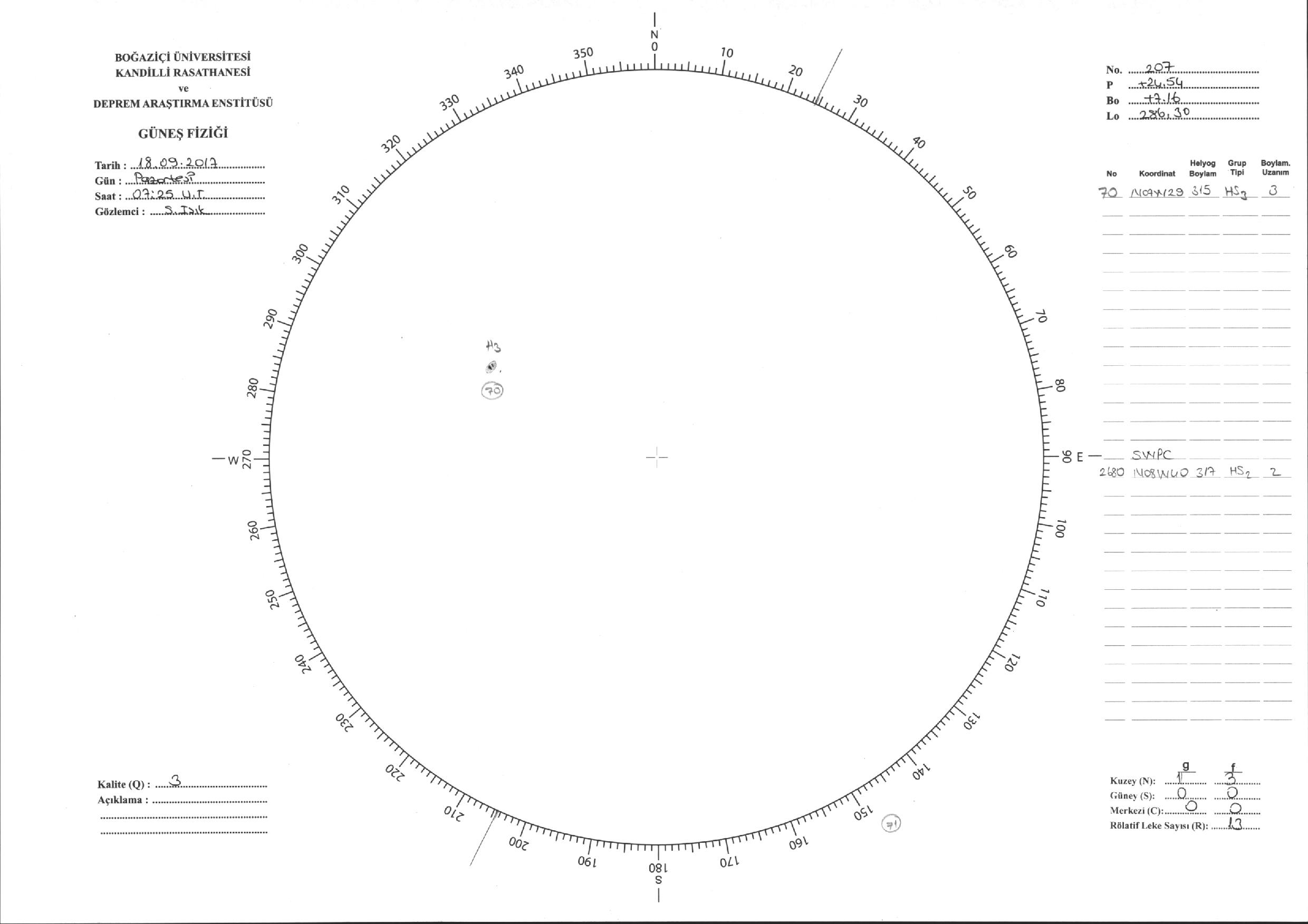 Güneş Lekesi Çizimi - 18.09.2017