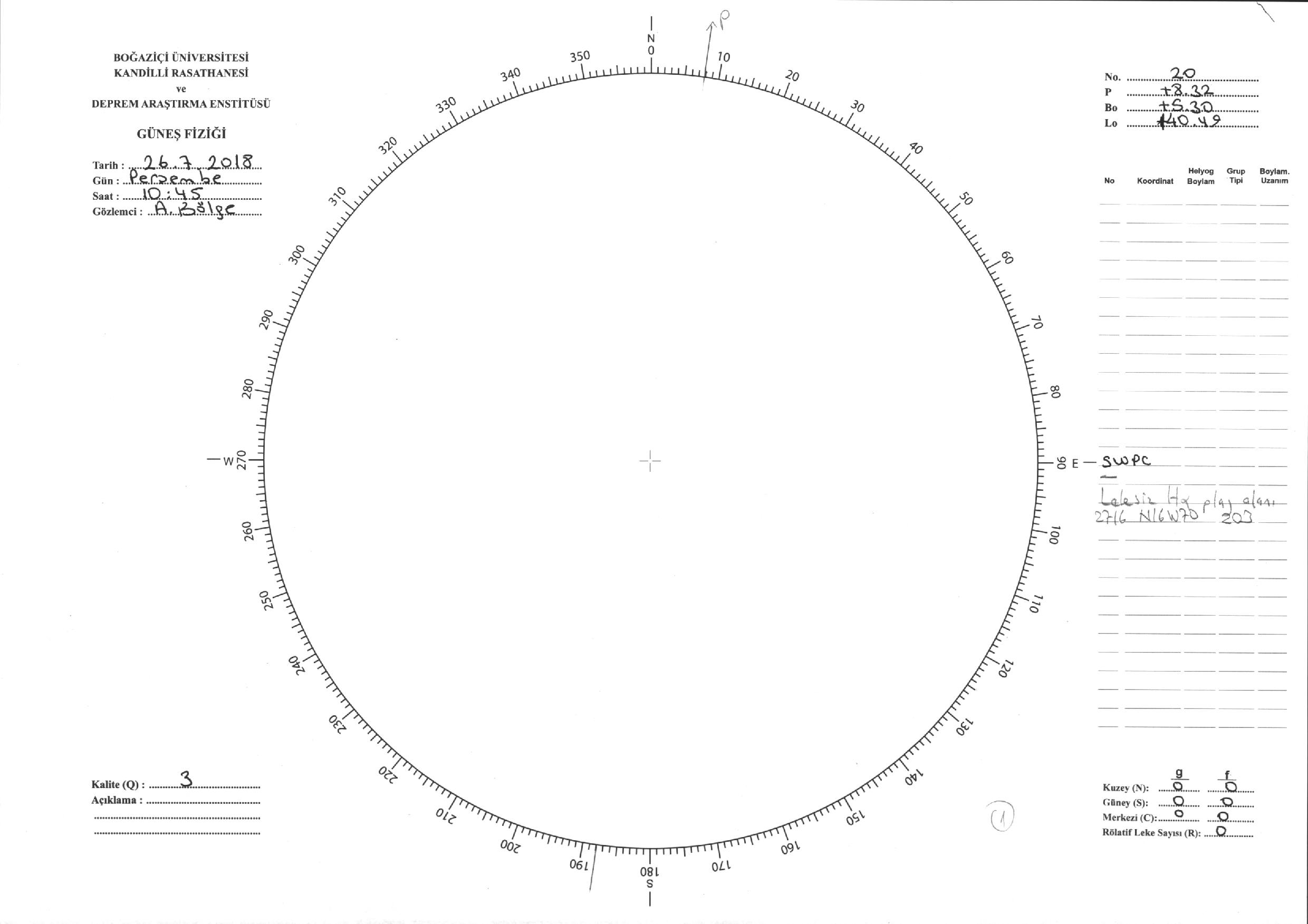 Güneş Lekesi Çizimi - 26.07.2018