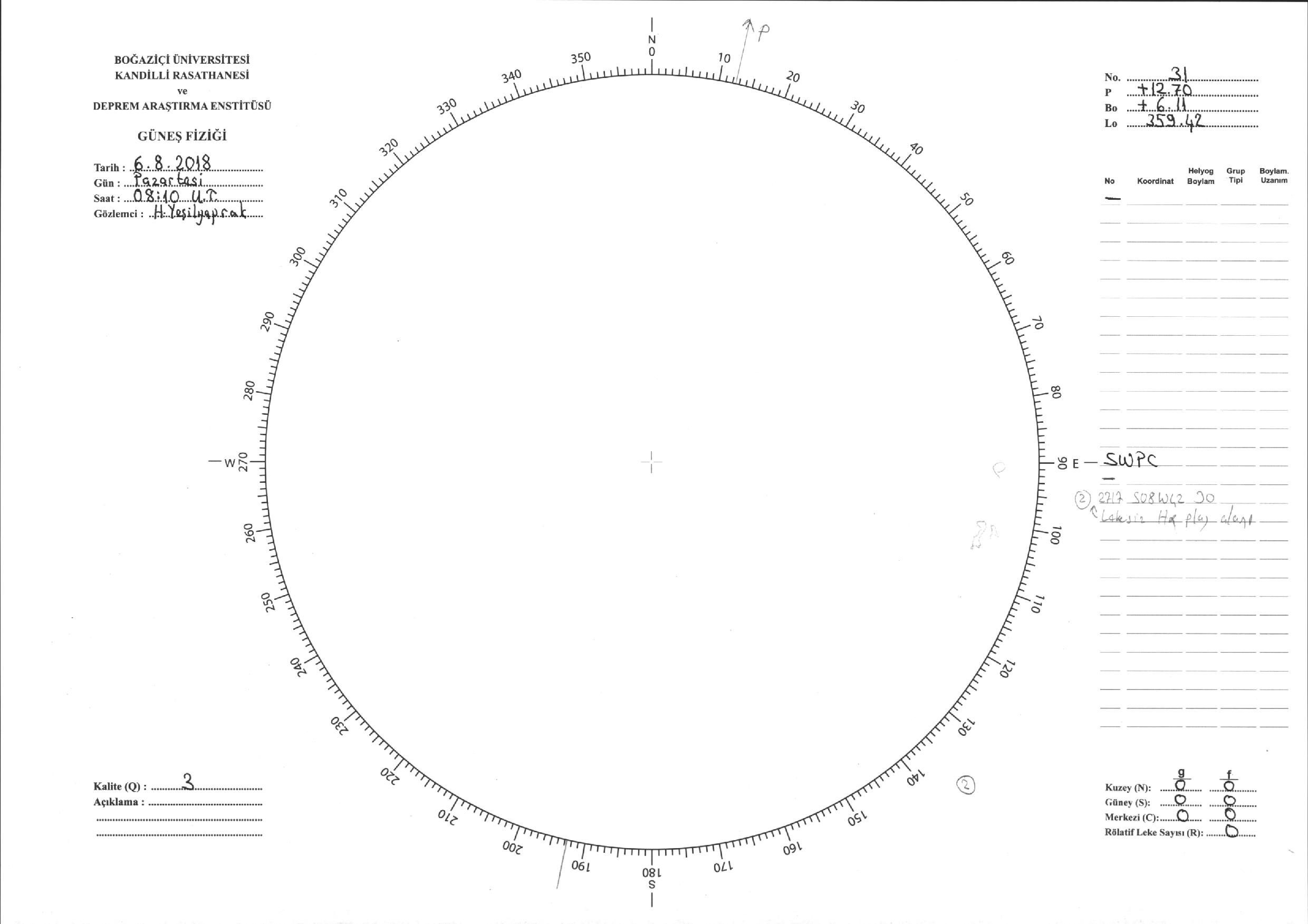 Güneş Lekesi Çizimi - 06.08.2018