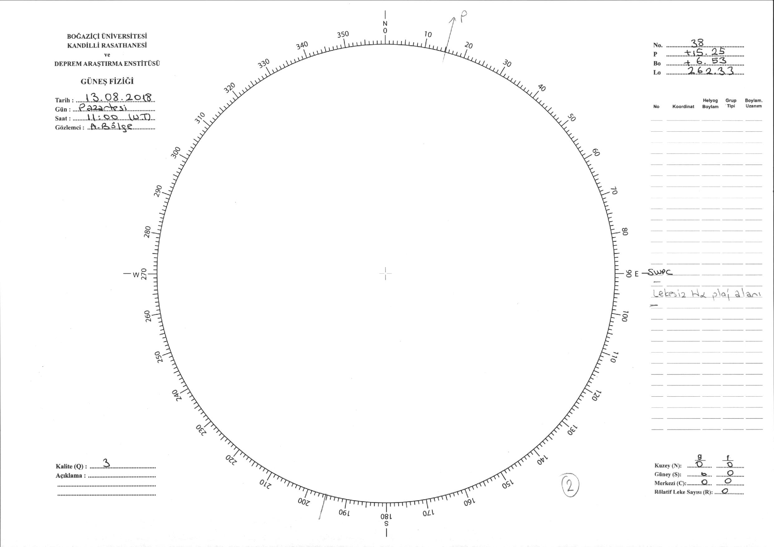 Güneş Lekesi Çizimi - 13.08.2018