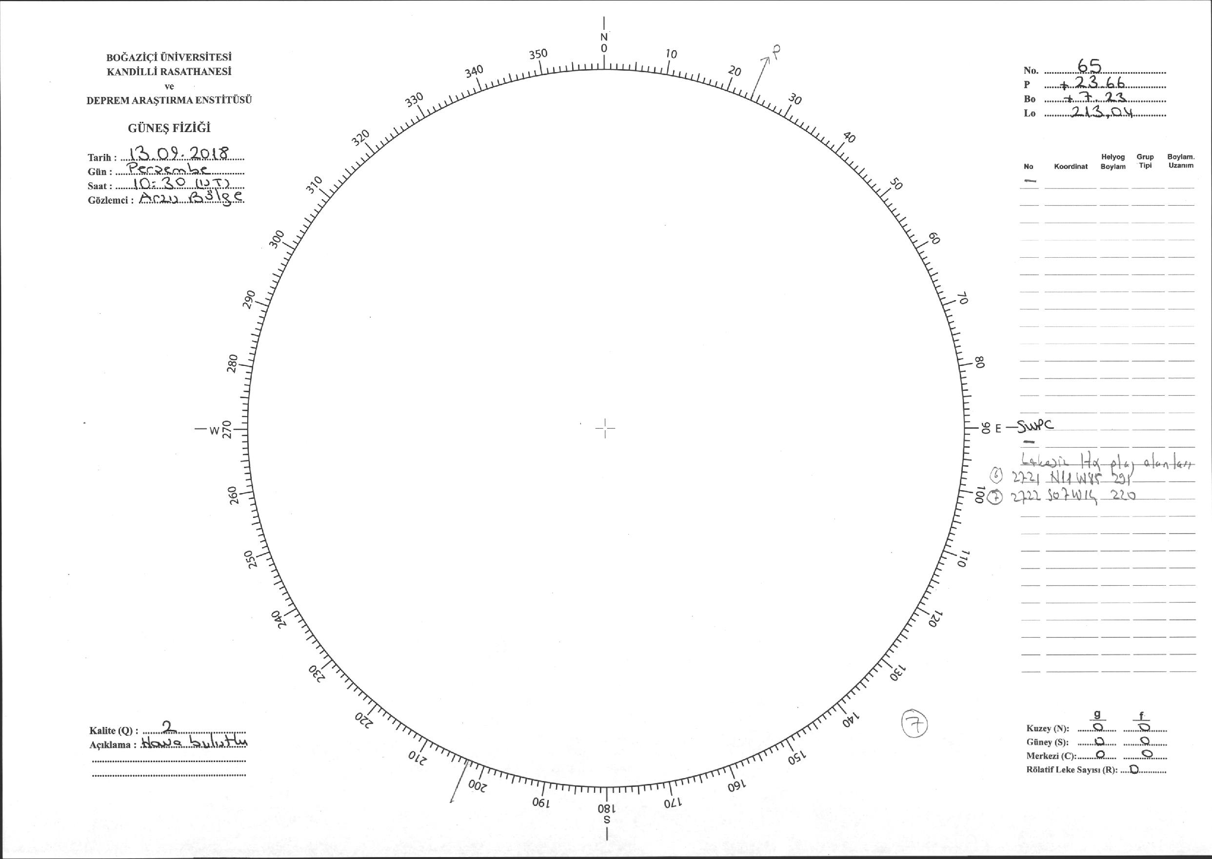 Güneş Lekesi Çizimi - 13.09.2018