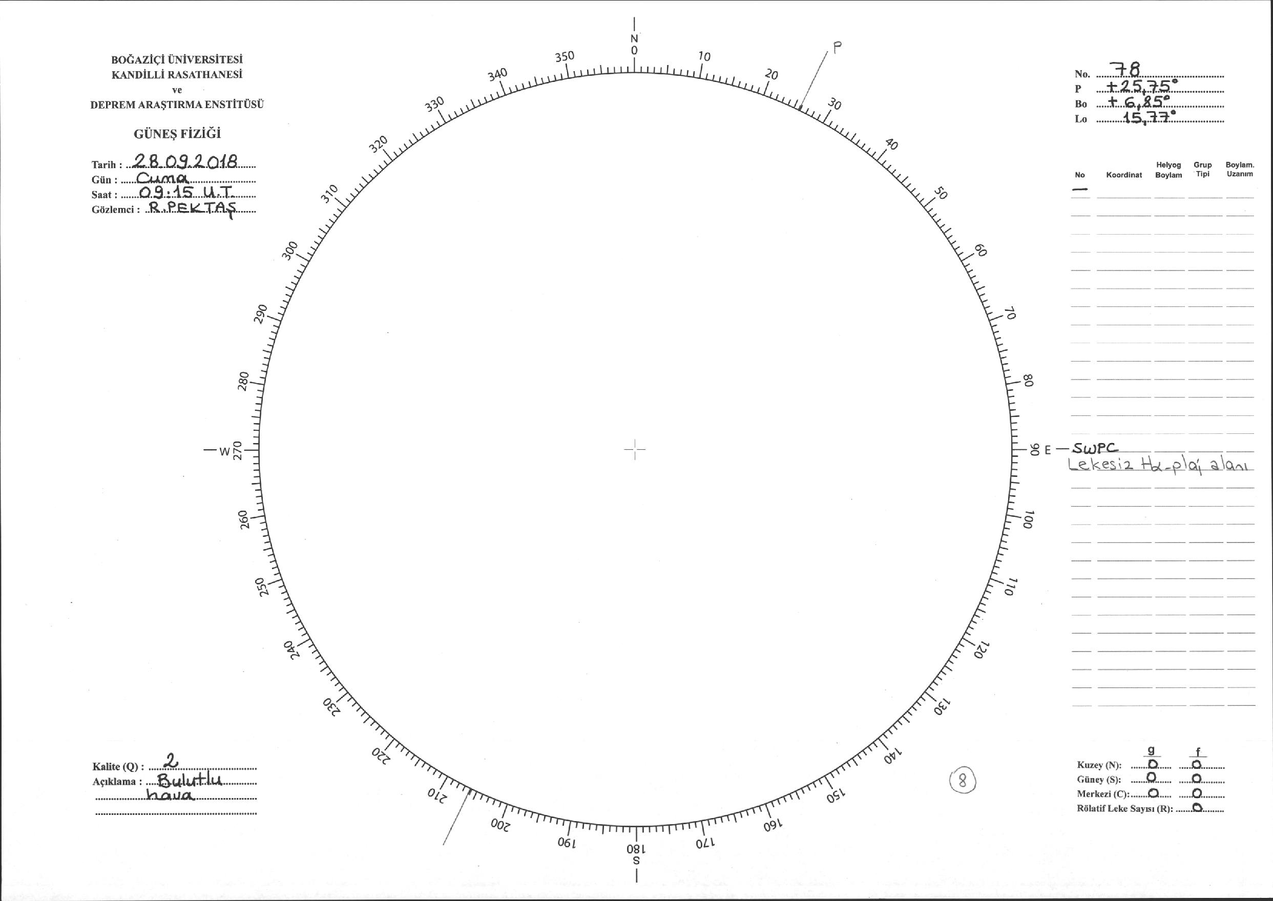 Güneş Lekesi Çizimi - 28.09.2018