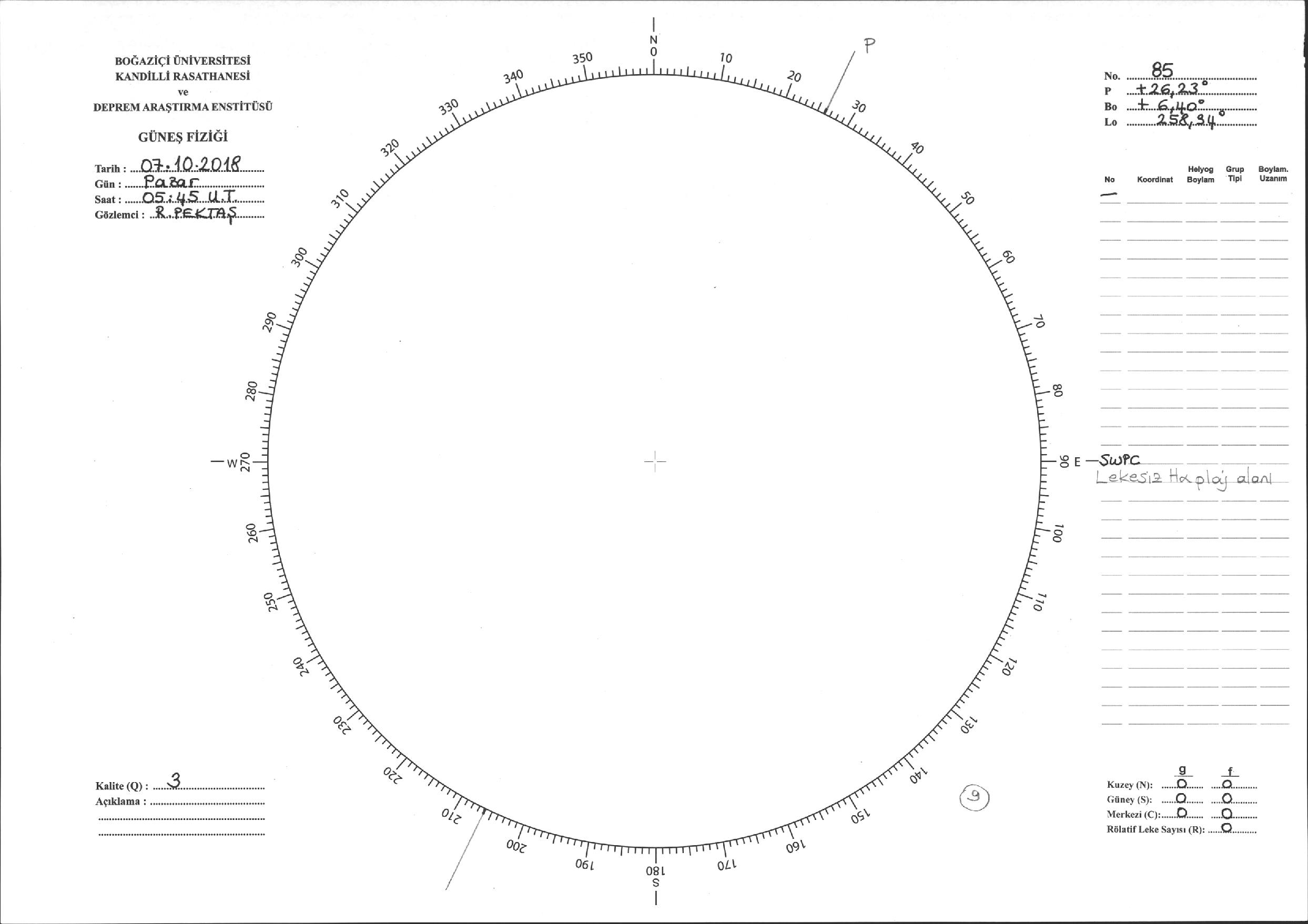 Güneş Lekesi Çizimi - 07.10.2018