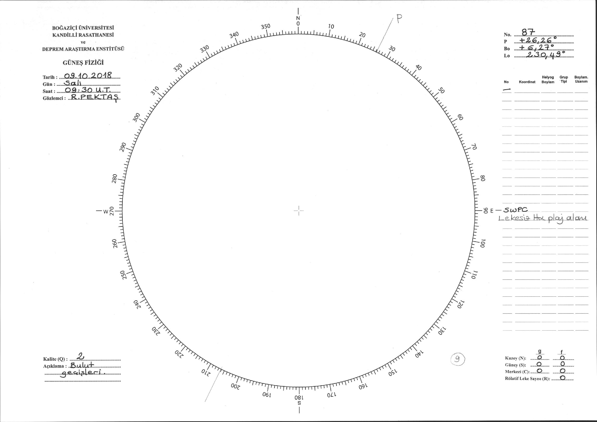 Güneş Lekesi Çizimi - 09.10.2018