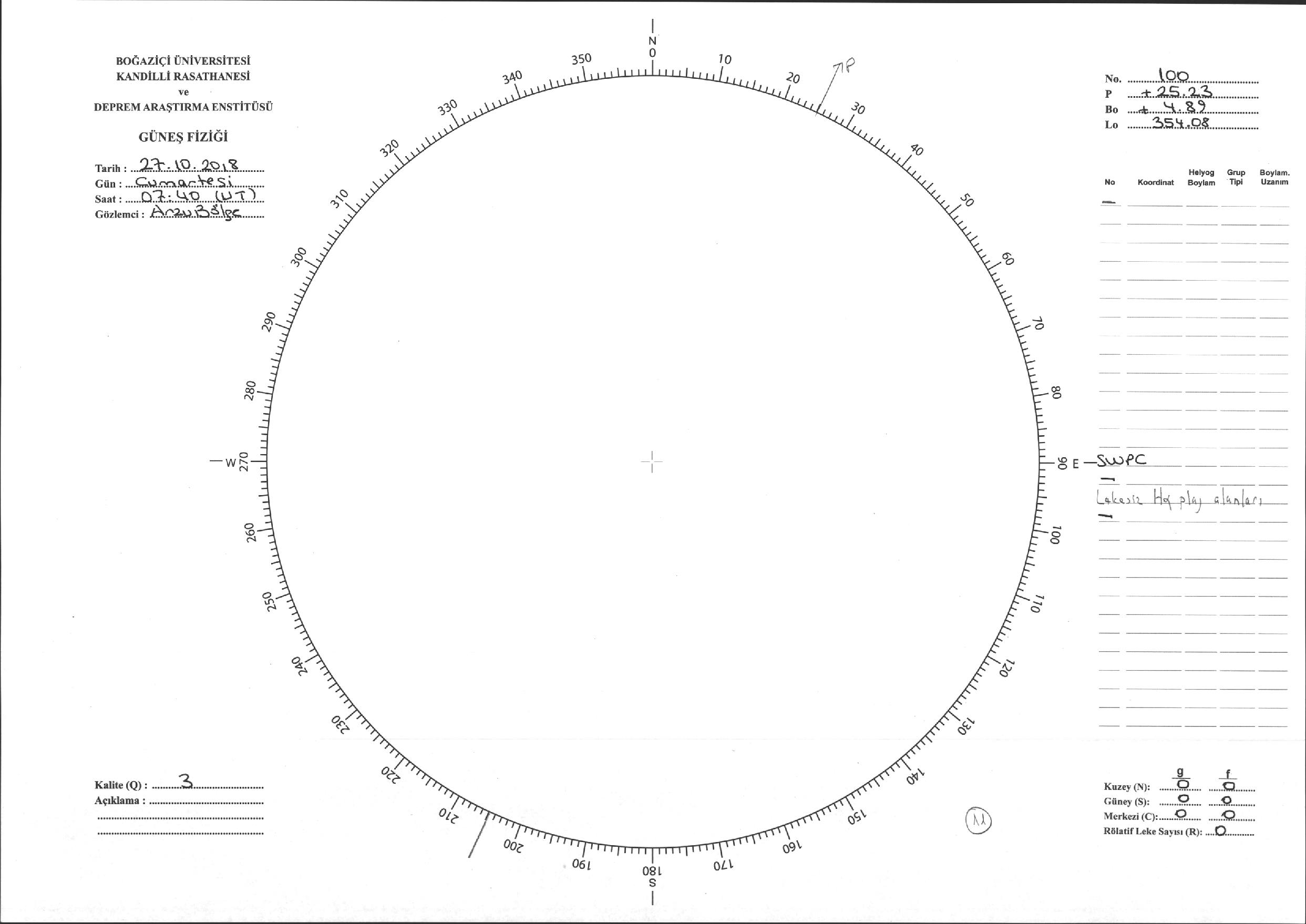 Güneş Lekesi Çizimi - 27.10.2018