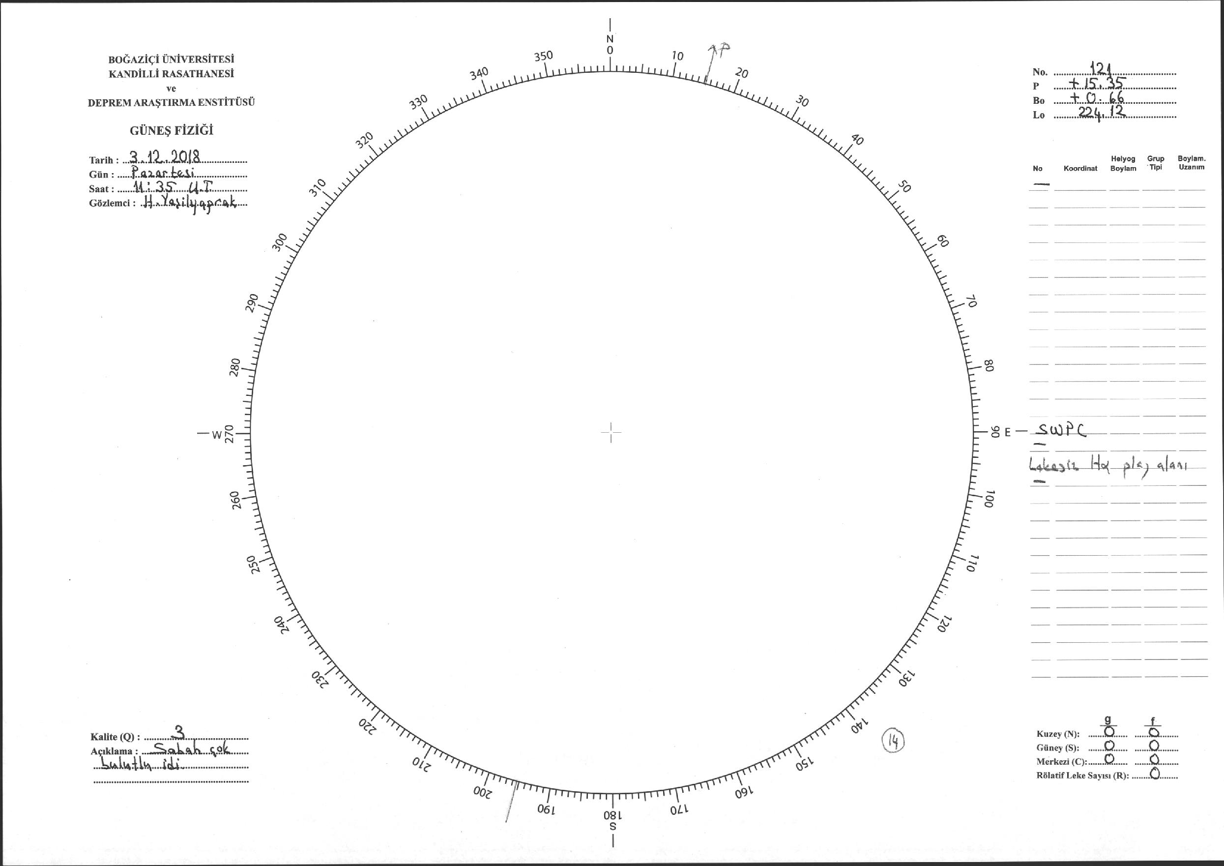 Güneş Lekesi Çizimi - 03.12.2018