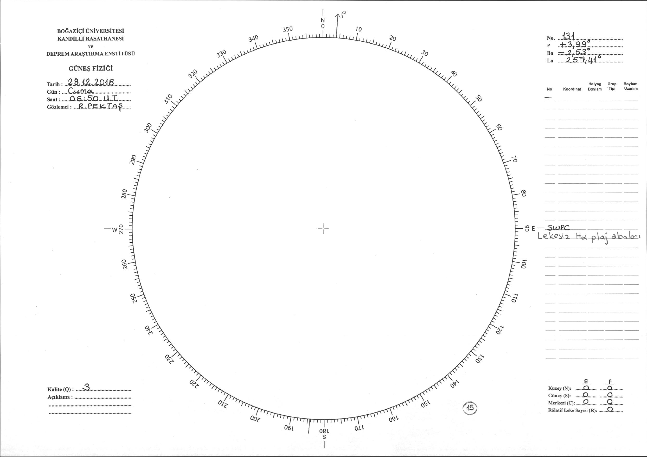 Güneş Lekesi Çizimi - 28.12.2018