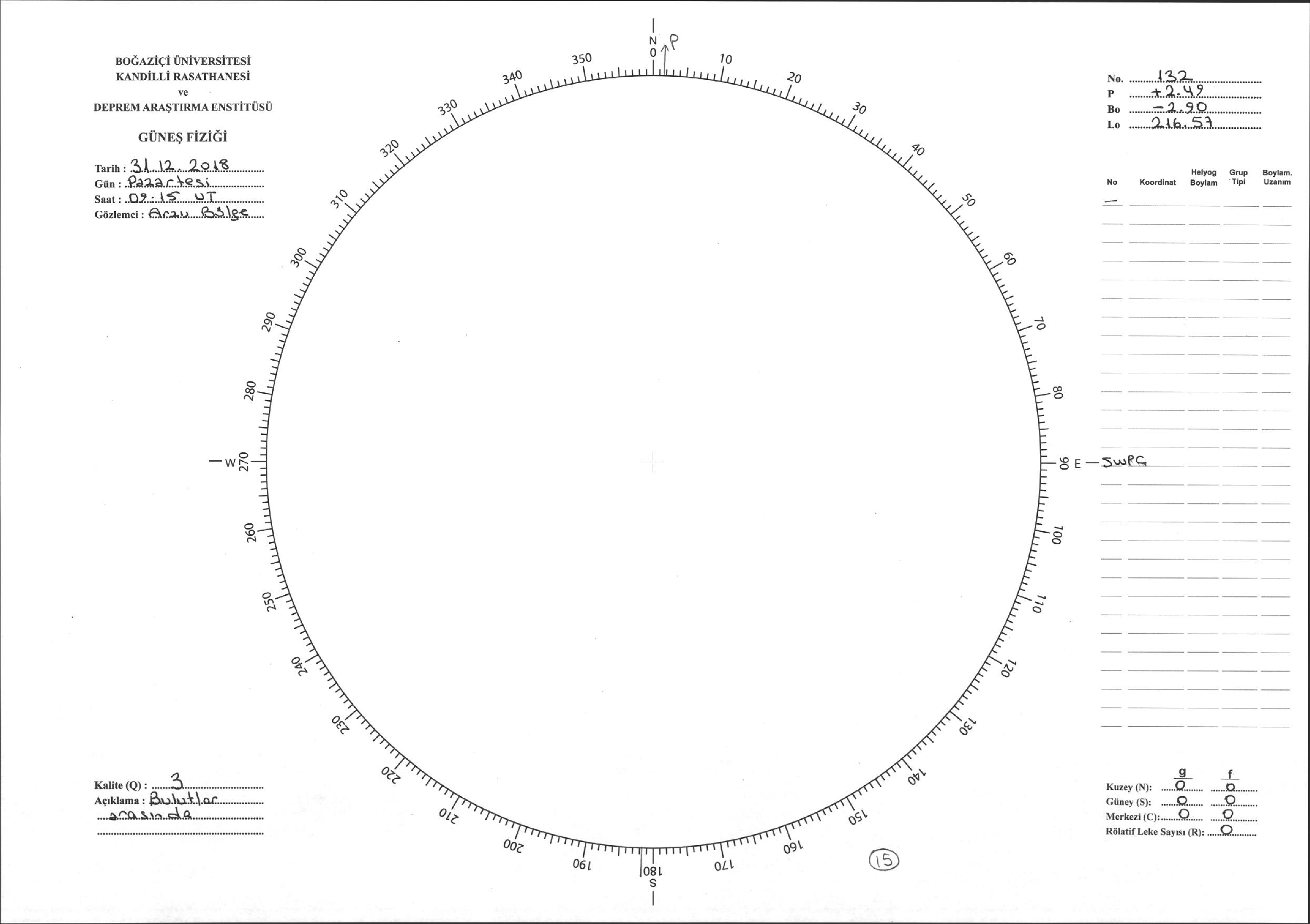 Güneş Lekesi Çizimi - 31.12.2018