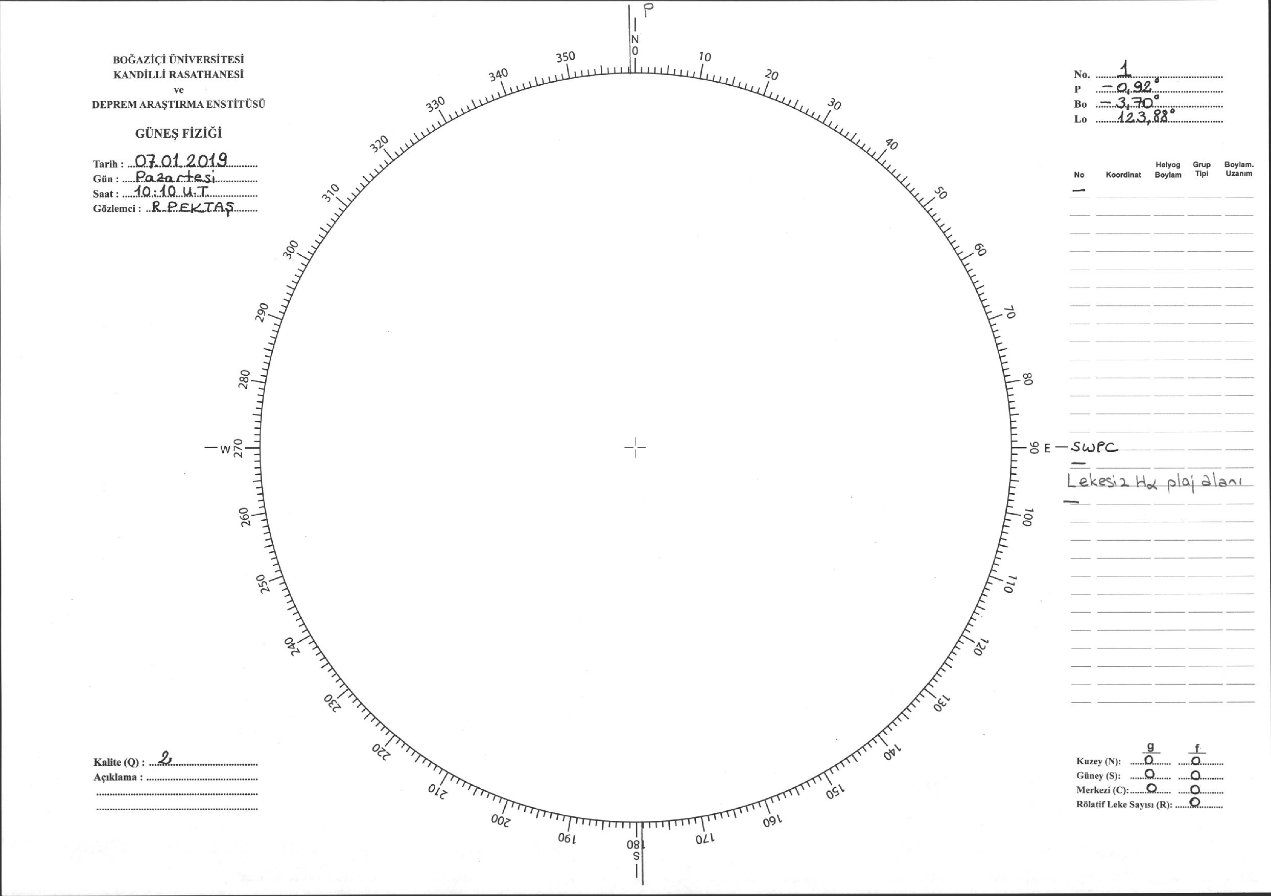 Güneş Lekesi Çizimi - 07.01.2019