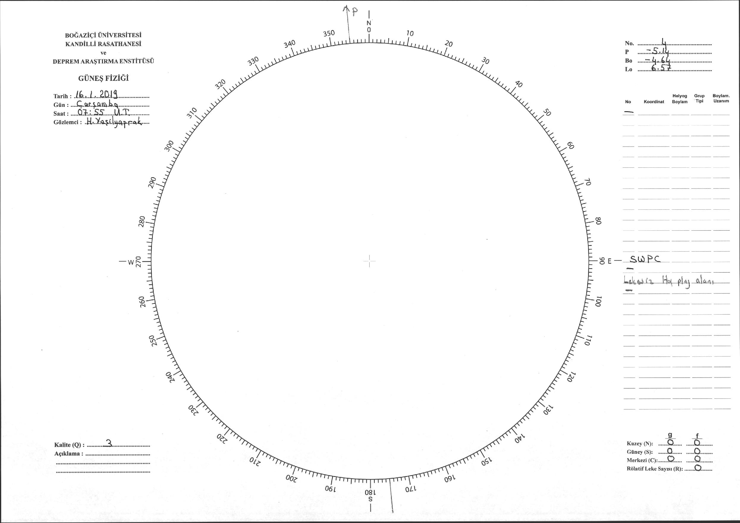 Güneş Lekesi Çizimi - 16.01.2019