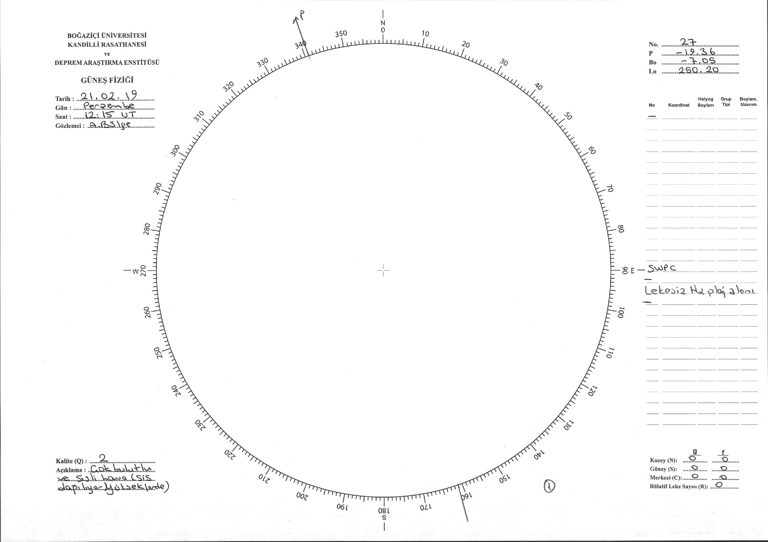 Güneş Lekesi Çizimi - 21.02.2019