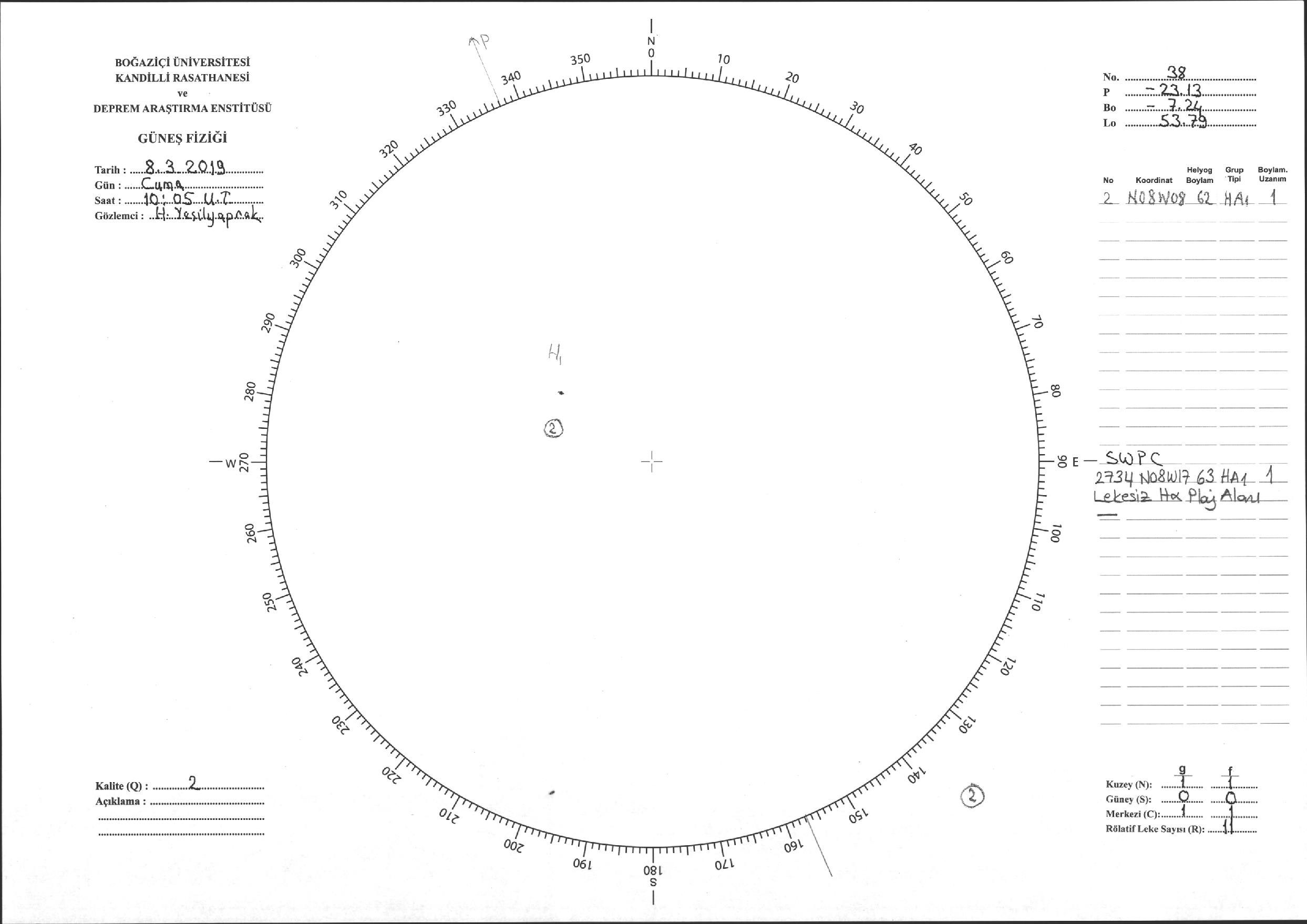 Güneş Lekesi Çizimi - 08.03.2019