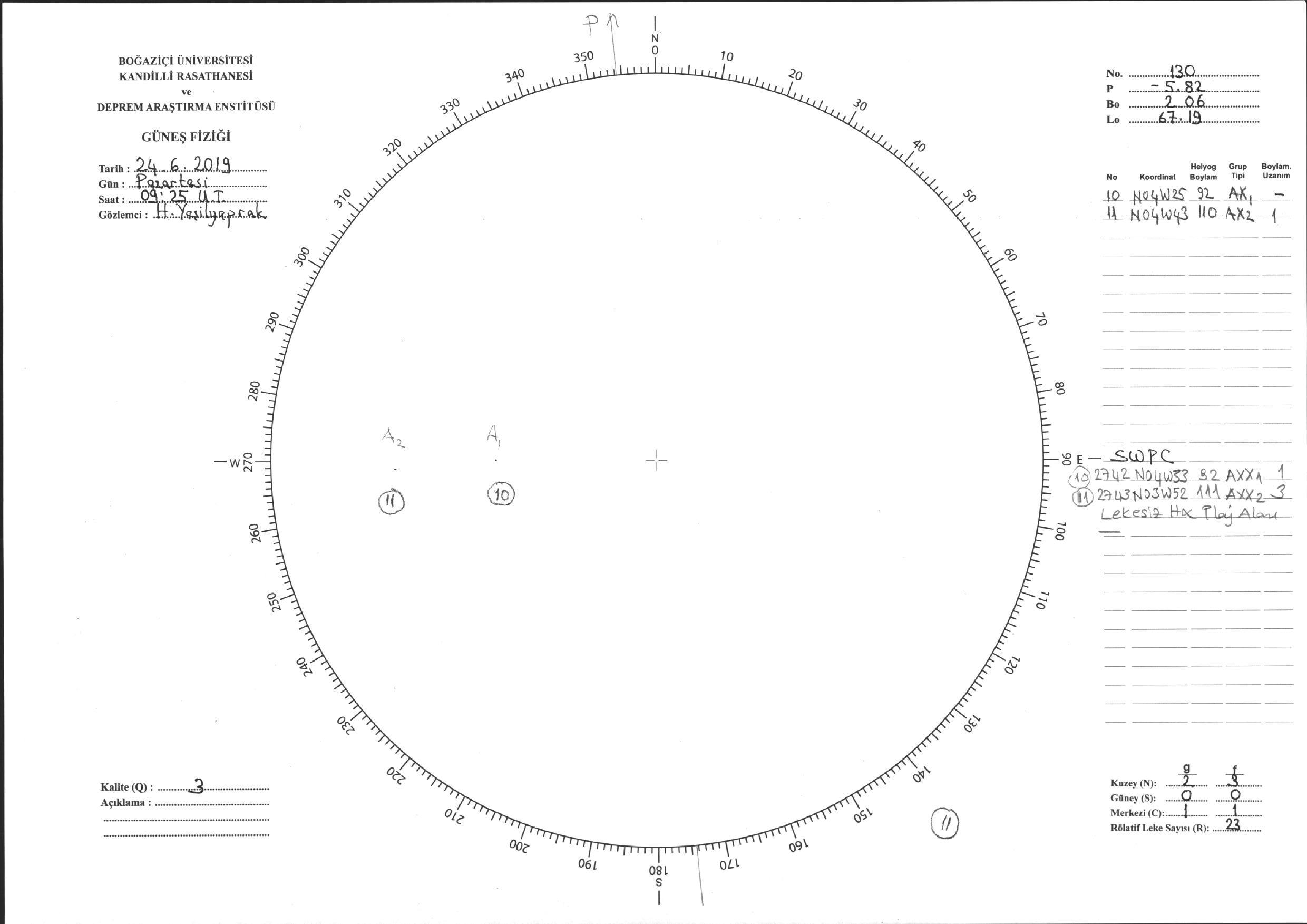 Güneş Lekesi Çizimi - 24.06.2019