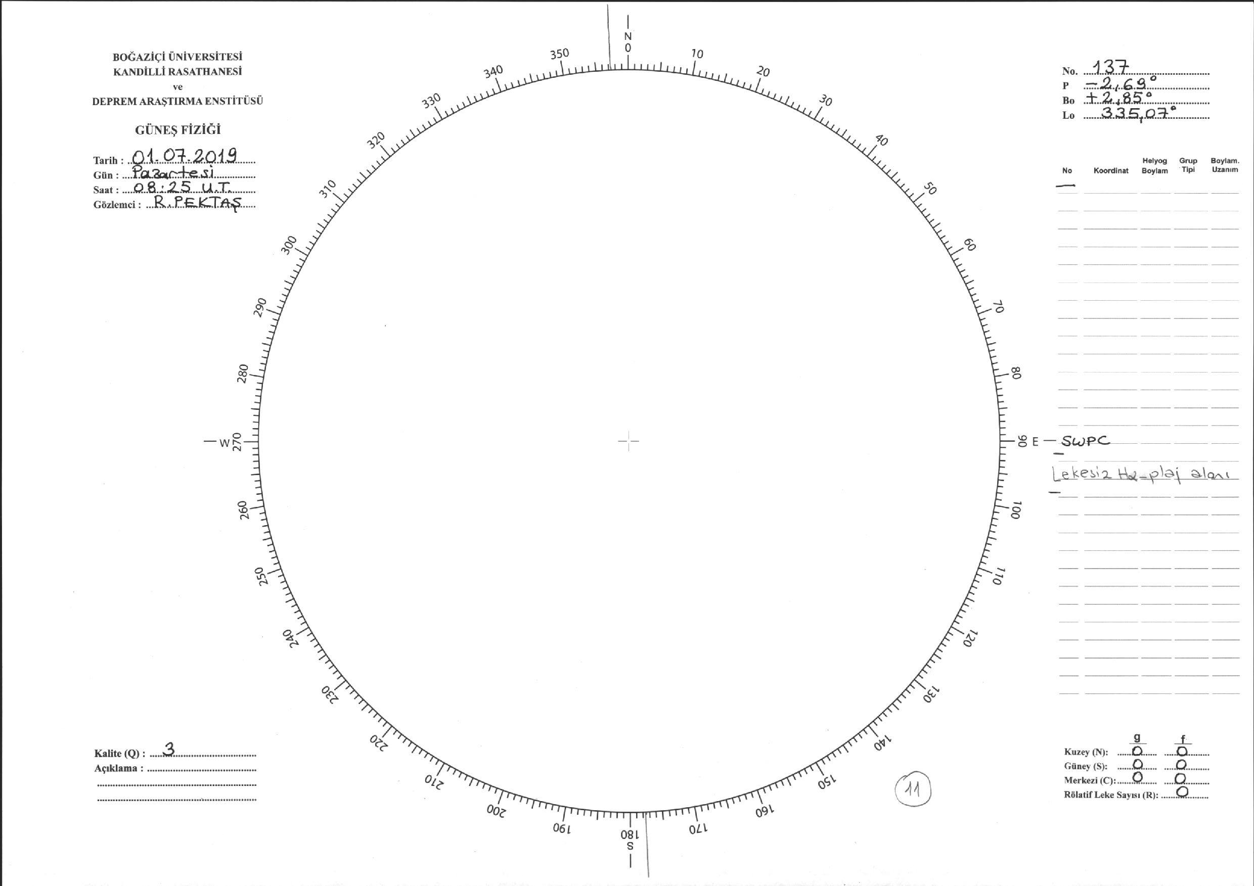 Güneş Lekesi Çizimi - 01.07.2019