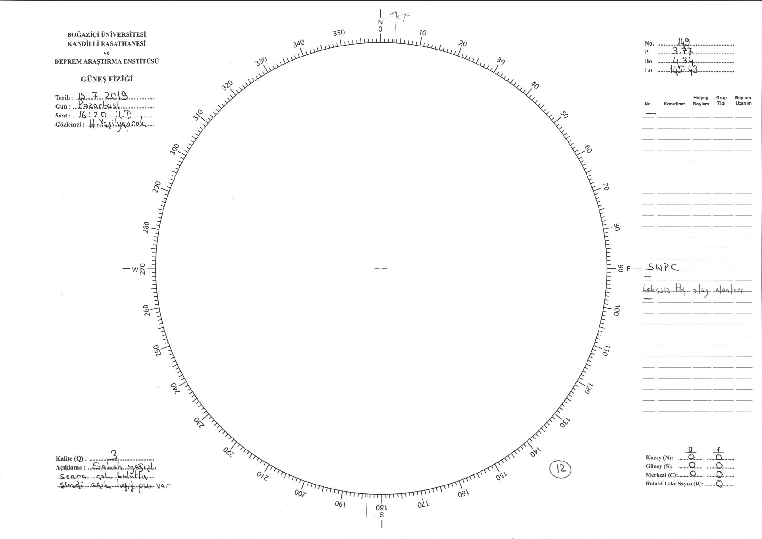 Güneş Lekesi Çizimi - 15.07.2019